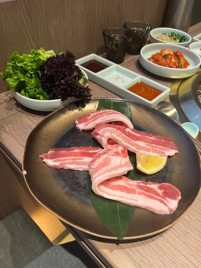 💯五花腩肉相間, 層層分明唔會太肥, 大火逼油後燒到乾同脆身, 配泡菜生菜蒜片清爽解膩