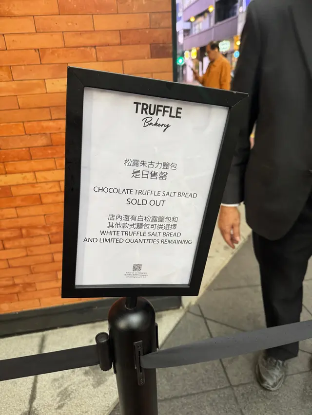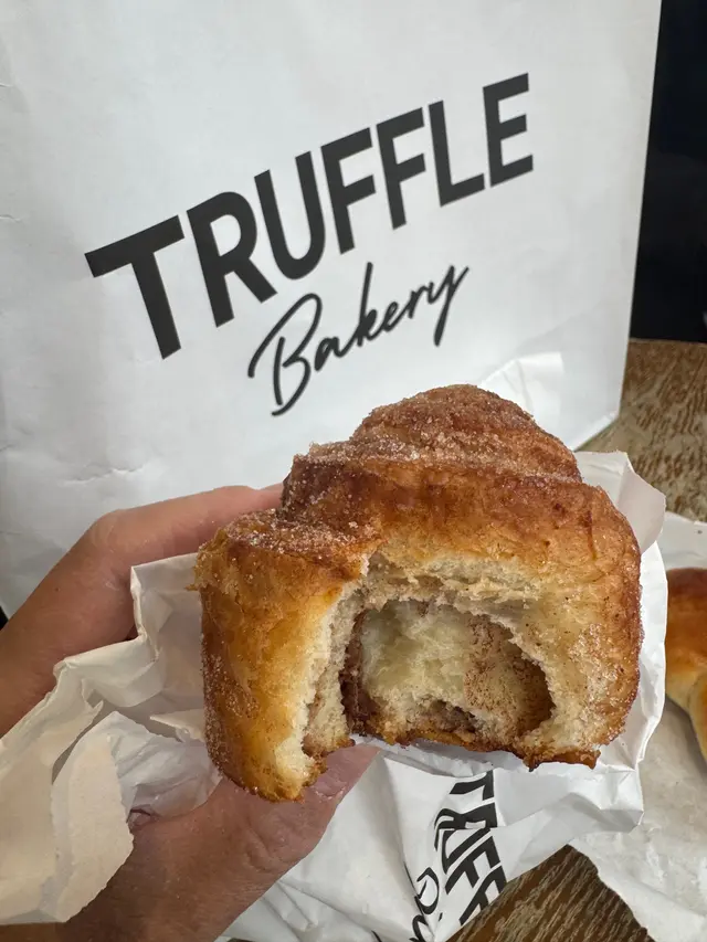 總結:值得一試,但唔使瘋狂排隊 Truffle Bakery喺銅鑼灣嘅旗艦店環境好寬敞,設計加落地玻璃,睇得出有心思。佢嘅麵包用料同手工真係有水準,白松露麵包同菠菜芝士包都各有亮點,肉桂包就略為平凡。價錢方面偏貴少少($20-$30一個),食完有啲意猶未盡。如果唔使排長龍,我會覺得係一個唔錯嘅體驗,但如果要排半粒鐘以上,美味子會話:不如試吓附近其他麵包店啦!下次有機會再encore白松露同試吓佢哋嘅松露朱古力鹽包同埋黑松露蛋沙律三文治,睇吓會唔會有新驚喜~