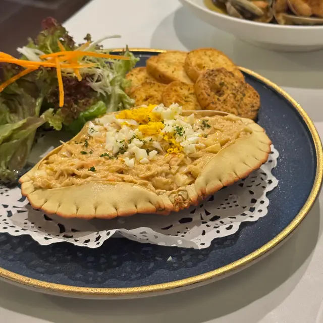 今次再嚟葡富軒,裝修依然咁簡約舒服,白牆配葡式瓷磚,坐低就覺得好放鬆~二刷試咗幾款招牌菜,真係冇令我失望!芝士意大利麵(蟹肉&蜆)意粉煮得al dente,芝士汁超濃郁但唔會膩,蟹肉鮮甜,蜆肉又大隻,撈埋一齊食真係好正!烤乳豬皮脆到「咔嚓」聲,肉質嫩滑多汁,調味剛剛好,點埋個秘製醬汁更加分!特製蟹肉釀蟹蓋蟹蓋塞滿鮮蟹肉,加咗少少芝士焗到金黃,一啖食落去超滿足,蟹香爆棚!服務依然咁友善,上菜速度都幾快。今次二刷都keep到水準,下次一定會再encore!…查看更多