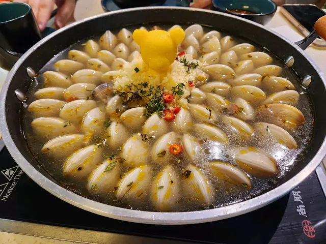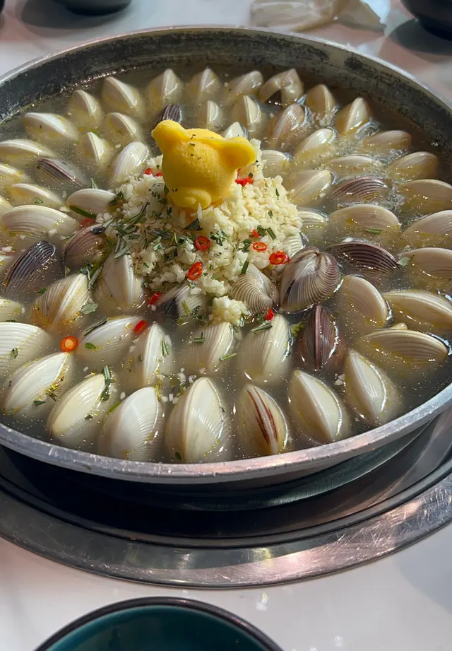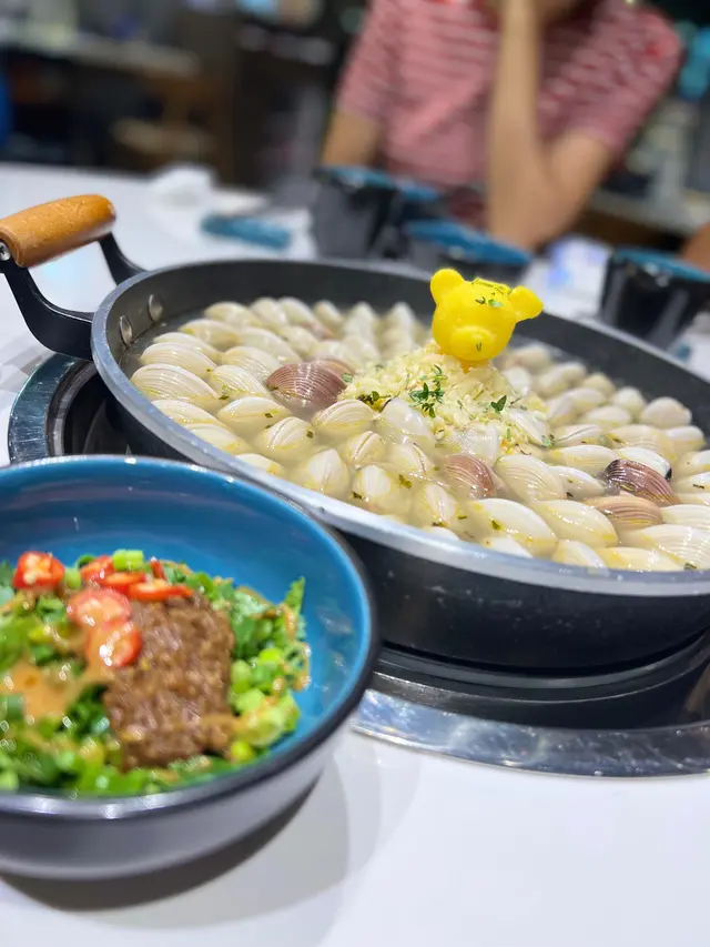 卜卜蜆:湯底係清湯加大量嘅蒜蓉 ,同一個熊仔造型嘅牛油。叫咗小辣,但係其實食落都冇咩辣。上到枱個造型好靚,打卡一流。睇住啲蜆慢慢卜卜地打開,好療癒嘅感覺。蜆肉好鮮甜。因為湯底比較清,所以就食到蜆肉嘅清甜味,同埋比較濃郁嘅牛油味。另外佢舖頭嘅豉油都比較甜,就算啲蜆點咗豉油,只會增添少少鮮味,而唔會太鹹,係好味嘅。打邊爐材料: