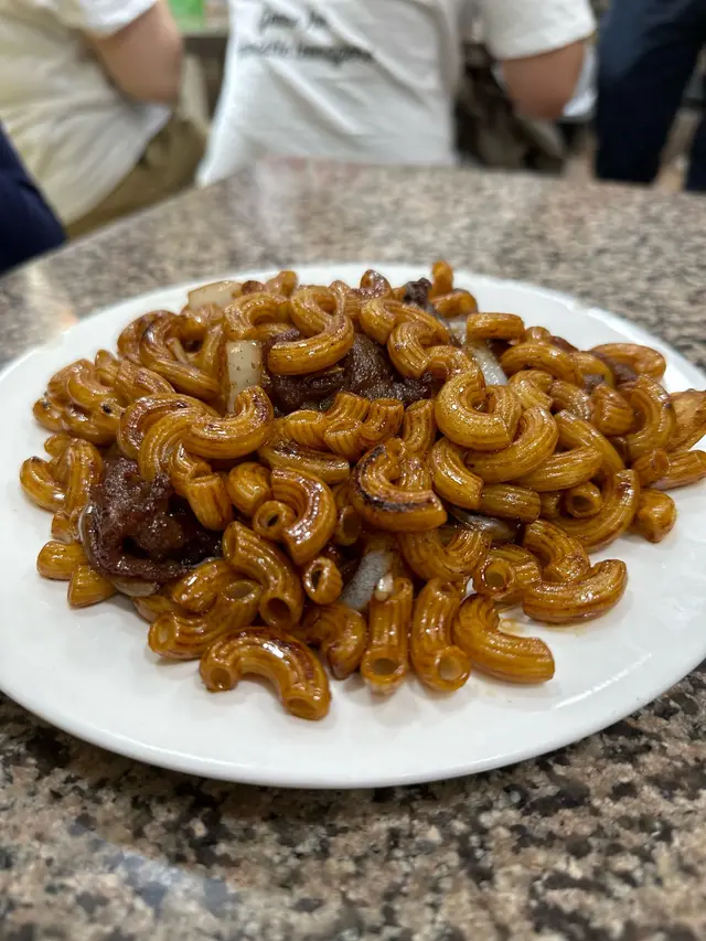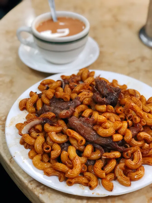成日見朋友嚟澳門食炒牛肉通,今次嚟澳門就試吓😋🔸法蘭西多士🟧西多士一上枱😧 個size真係巨大到有啲嚇親🤣 淨係厚度同size已經贏咗😜 原來西多士都係呢度嘅名物。表面炸到好似金磚咁,多士面塊牛油好邪惡🤤 拮幾下等佢溶落去,一切落去多士超鬆軟!落埋糖漿確真係一流🤤 食咗一半已經好飽🤭🔸 牛肉炒通粉🐮原來牛肉唔一定配炒河,炒通粉都可以好夾🤭 通粉炒得唔會過淋能夠保持彈性,仲幾入味。牛肉亦炒得啱啱好唔會過老,但我更喜歡裡面嘅配角炒洋蔥🧅 炒得好香又惹味🤭 不過可能太有鑊氣,會食到有少少鑊燶味🫢環境係舊式茶記,如果二人去嘅話好大機會要搭枱。…查看更多
