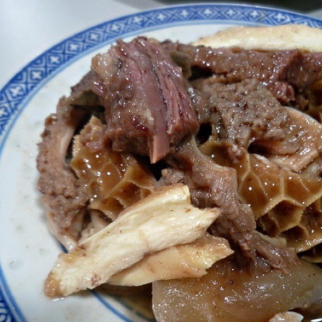 趁聖誕假期過大海食食食!聽朋友講營地街市三樓熟食市場有間叫『梓記牛什』超正!上次10月過去時想去食...但上去到18:30竟然已經收咗舖!所以呢次中午一落船就即刻過去食!雖然去到人超多...幸好等咗10分鐘就等到枱。因為諗住之後再去食其他嘢,所以我哋只係點咗一碟淨牛什(MOP50)、同一碗咖哩雞翼米粉(MOP23)!一碟牛什有幾件牛肚、牛筋同牛腩...份量吾太多...但真係好好味...煮得好入味好林!咖哩雞翼就比較一般!…查看更多