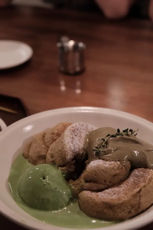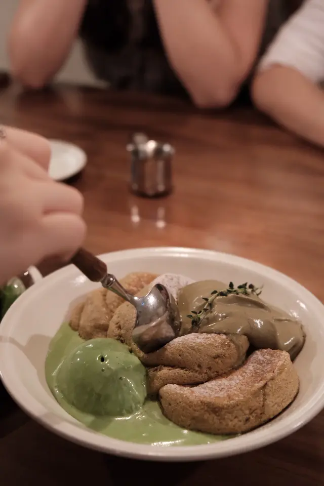 在網上發掘到澳門要吃什麼的時候,無意中發現到”白日Alba”這間日式喫茶店,不論是復古木系的裝潢,還是menu中的布丁、班戟、甜點,都是我想要吃的,還有熱食(剛好附合同行的家人)立即把它排到日程之中📝。網站上訂好14:00的位,天氣炎熱,我們早了半小時到,幸好店員仍然為我們安排入座,不過原來14:30之前是沒有散點的,每位要點一份套餐,包括主食1項,前菜/甜品選一項,飲品一杯(MOP$168),(官方網站只寫著: 最低消費為每人點一項餐品)幸好小朋友不用計算在內,否則剛在大三巴附近掃街的我們著實有點吃不下去。主食比較出色的是” 蝦濃湯豚肉烏冬”🦐~一整碗都是橙色的濃蝦湯,面頭放滿了櫻花蝦,喝一口湯頭也是滿滿的鮮甜蝦香味,烏冬是幼身的,但是不影響掛湯效果,豚肉入味,和湯底非常搭配。“和洋魚蝦卡邦尼烏冬”正正常常的卡邦尼,烏冬麵亦彈牙好吃。“唐揚雞月見蛋包飯”店員會在上桌的時候才在蛋上劃一刀,雞蛋煎得很完美很滑溜,唐揚雞炸得脆而不膩,隨餐還有日式咖哩醬汁和月見雞蛋汁,可以沾炸雞或是伴飯吃都很可以。飲品方面我點了”靜岡八女抹茶”,反而媽媽點的”海鹽柚子喫茶梳打”比較吸引也適合打卡,上面有一球抹茶雪糕,茶控必點啊~我最期待的(目標)其實是甜品,大推”茶寮舒芙蕾”(+MOP$38)💚,熱呼呼即點即製的舒芙蕾班戟,配了焙茶忌廉,和抹茶Gelato雪糕,茶味濃而且班戟質感軟綿又有空氣感,如果不是吃了主食,絕對可以一個人消滅一份。另外”清水卷”是抹茶roll cake💚,蛋糕體不是非常軟熟的類型,但是質感不錯,不論是蛋糕體還是忌廉也吃得出濃度,帶回甘,這個也是推薦茶控吃吃。比起香港來說,整體cafe價錢算相宜,而且食物有誠意有質素,值得大家試試。…查看更多