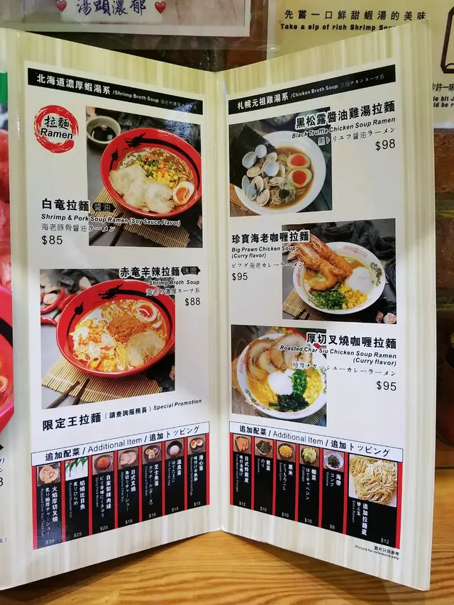 平時成日食開豬骨湯拉麵🐷,濃郁嘅調味同埋脂肪🐖容易會食到有飽膩感💨。呢間喺澳門🇲🇴觀音堂附近,去咗日本拜師嘅拉麵舖🇯🇵,就主打食清新又濃香😍嘅蝦湯拉麵。蝦湯味道鮮香🦐,同時間唔會好油膩,配埋自家製嘅掛湯彈牙拉麵🍜好夾。.🦐海竜拉麵(鹽味)($78)簡單嘅鹽味調味🧂,更加突顯出蝦湯嘅味道🤤,飲得出又蝦頭嘅蝦膏🦐,亦都有蝦肉嘅清甜💕,因為舖頭將蝦頭焗香♨️,再將蝦嘅唔同部份都放落湯裏面熬煮🧑🏻🍳。拉麵比起平時嘅舖頭更加彈牙👅,好味。而叉燒肉都食到油脂香味🐷,好滿足。.🔥火竜拉麵(麻辣)($88)辛辣味噌🌶️配埋蝦湯嘅味道,味噌嘅發酵香味😋,同埋辣肉碎🔪,令到湯底味道好濃郁、好鮮👍🏻。鍾意食辣嘅朋友會好享受😝,仲可以揀辣度。湯底掛上拉麵🍜,真係好正。糖心蛋做到流心效果🍳,入味嘅蛋漿配埋湯底好好食🤩。.🐥日式炸雞($38)除咗外皮酥脆,裏面雞肉嫩滑之外💕,雞肉仲係店舖嘅自家調味🧂。喺醃肉嘅時候落咗柚子蓉🍊,令到雞肉有柚子香味,喺炸雞嘅邪惡感之中😈,有果香嘅清爽感覺🎐。.🍮焦糖布甸焦糖嘅味道好香👅,而且質地啱啱好,可以掛起喺每一啖嘅布甸上面🍬,又唔會太杰而令到味道過甜。布甸嘅質地偏向結實🫦,同時間口感好綿。…查看更多