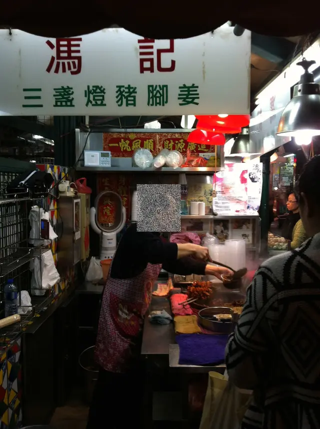 由早上到下午的幾個鐘頭,當世人還在酣睡正甜的時候,我已經吃了三餐早餐。雖然很飽,回到酒店途中,再去一下那個三盞燈附近走走,來到那個香氣四散到不得了的圓形位置,如果你有少少認知,這個是美食區,多間出名到不行的餐廳都在這裡出現,如果你好似我咁飽到嘔都仲好為食的話,你應該要來這裡。馮記三盞燈豬腳薑,和豬腦,牛肉河,墨魚丸等有這之都有番咁上下出名,未食過都聽過。當然來到馮記,你行到個counter 就嗅到那個薑醋的香,個煲野一路燒一路出味。之前吃過豬腳和蛋,當然是完全入味,就算朋友生仔我都冇乜興趣食豬腳薑,但這裡的我卻不想錯過。今次吃左咁多野後,輕輕一串豬耳便算了。聞落去已經知勁,豬耳完全滲入那些薑醋的強烈酸酸而又令人開胃的味。豬耳非常彈牙,啖啖彈性都吃到那些醋汁滲透你的舌頭。八元一大串,吃到又大串又好食的薑汁,你說香港有沒有,我看暫時咁平咁抵食,我未見到。晨光的早餐之飽肚到下午前的酸味小吃,打通了任督二脈,下午繼續食過。馮記三盞燈豬腳薑,絕對就如補給站,給了力量,讓你吃的CP值,加強到另一個level。三盞燈馮記豬腳姜新橋(三盞燈/白鴿巢)圓形地街市熟食檔查看更多
