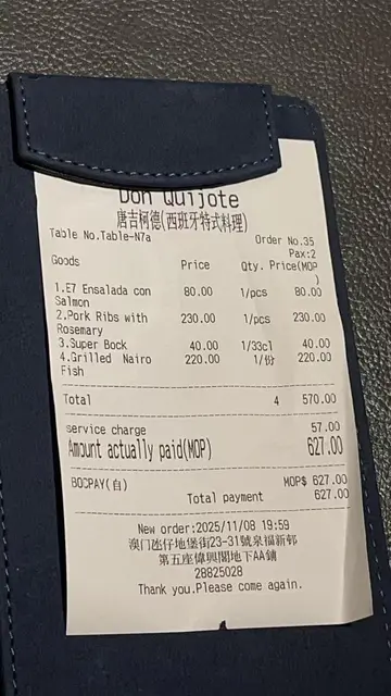 這次我帶著家人來到澳門,特別選擇了唐吉柯德餐廳,實在是個明智之選!這裡是澳門唯一一家同時提供正宗西班牙菜和地道葡萄牙菜的餐廳,一進門就被地中海風情的裝潢吸引住,讓人感到無比放鬆。我們點了煙三文魚沙律,鮮嫩的三文魚搭配清爽的蔬菜,開胃又不膩。隨之而來的是令人期待的燒西班牙黑毛豬肋骨,外皮金黃酥脆,肉質鮮嫩多汁,讓我一口接著一口,根本停不下來!除了美味的食物,餐廳的服務也相當周到,讓我和家人的用餐體驗更加完美。這次的家庭聚會充滿了歡笑和美好的回憶,唐吉柯德無疑是我再次回訪的首選。如果你也有機會來澳門,一定要來這裡享受一頓豐盛的美食盛宴!查看更多