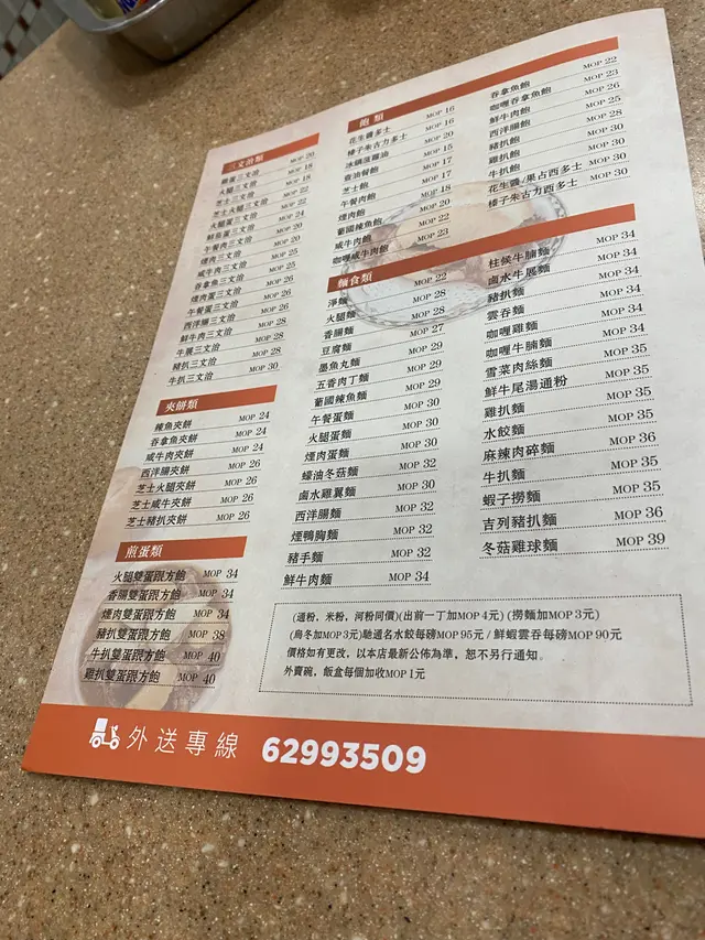 去澳門睇GD演唱會之前,周圍行吓食吓,去左呢間老字號茶餐廳醫肚🍛當日3點左右去到,唔使等位,但明明有空枱都逼人搭枱坐😅.✨雞扒包✨雞扒juicy,邊位仲有焦香,麵包唔會好硬,仲提供埋膠手套,唔驚食到成手都係👍🏻✨馬介休球✨外脆內軟,岩岩炸起熱辣辣🔥充滿咸香✨牛尾湯通粉✨份量都幾大,好多牛肉粒粒,飲落好似加左料頭煮既罐頭湯,但係係好食既另外就係點餐qr code個網好難用!因為食物太多,好難搵,旁邊既分類都係壞既,搵左好耐都落唔到單,阿姐都係唔肯幫手,一定要我地經qr code落order, 希望可以改進吓!查看更多