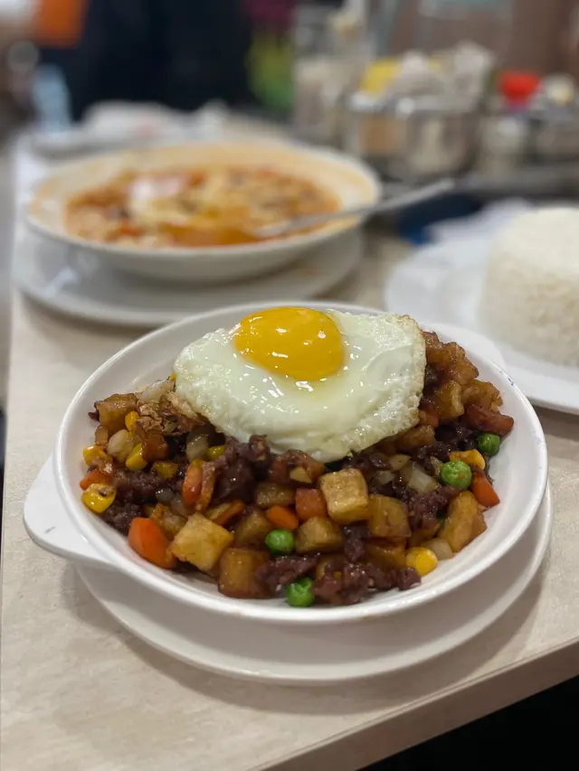 開關後第一次黎澳門第一站就揀左黎喜蓮老實講呢間遊客餐廳食物水準未係好高但第一餐想食番個懷念感就係為左呢個干免牛飯雖然澳門其他地方都有但以前第一次係澳門食就係喜蓮食到覺得非常好食其實整法同材料好簡單將牛肉 薯仔 三色豆炸好面頭加隻蛋就係簡單又好食撈飯一流除左食干免牛飯順便都叫一碗牛尾湯通基本上每枱必叫其實算做得不錯湯底唔會死咸食完唔會口渴而有啖啖牛味除左牛尾湯通+干免治牛飯其他食物我都好少會叫因為要留肚食下一間呢😋查看更多