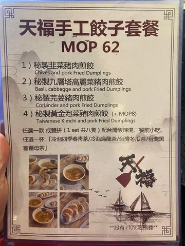 餐廳:天福台式鐵板燒 (皇朝)地址:宋玉生廣場(皇朝)柏林街218號星海豪庭金星閣地下K, L, M座相信無邊個澳門人唔識七八十年代喺天福廣場紅極一時嘅大型遊戲機中心🎮,作為大部份澳門人都去過嘅地標,台灣老闆喺6年幾前用「天福」呢個名,開咗呢間主打台式鐵板燒同台灣美食嘅餐廳——天福台式鐵板燒,希望延續澳門人嘅回憶除咗各款MOP58起嘅抵食套餐,包括全手工製餃子🥟、大碗肉燥蓋飯、鐵板等,趁住呢個秋冬季節,天福仲推出全日供應嘅冬日喜慶特選二人套餐(MOP588)同秋日精選推介二人餐(MOP348),而我今次嚟食嘅就喺後者🍽兩個人前前後後有8款食物/甜品/飲品,呢個套餐都真喺算抵食,其中仲有幾款食物可以二選一,可以比食客按喜好有唔同嘅選擇🤓。先嚟咗個台灣小食拼盤,裡面有二人份嘅台灣香腸、花枝丸同櫻花蝦餅,即刻勾起我對上一次去台灣夜市掃街嘅回憶過咗無耐店員就送上自己煲無味精嘅老火靚湯——合掌瓜紅蘿蔔瘦肉湯同青瓜蟹籽沙律🥗,與此同時師傅就喺眼前嘅鐵板爐整緊炒緊油麥菜🥬,食落仲有陣陣蒜香🧄之後有鐵板巴西黑椒牛柳🇧🇷,喺鐵板上切粒,加上醬汁同用洋蔥爆香🧅,每啖都喺軟嫩多汁嘅牛羶香滋味🤤;食埋新鮮大隻嘅蔥花蒜香扇貝,就到招牌台式照燒汁炒麵,簡單加咗洋蔥、椰菜、紅蘿蔔炒香,配埋隻流心太陽蛋🍳,雖然簡單咗啲,但勝在夠飽肚最後食埋甜品——自家製台灣手工芋圓仙草凍同蛋香濃滑嘅天福雞蛋布丁🍮,飲埋唔洗加錢就飲到嘅台飲——珍珠奶茶同冷泡烏龍茶加蒟蒻🧋,既食到鐵板燒,又可以一嘗台式美食,真喺一舉兩得🥰…Read More