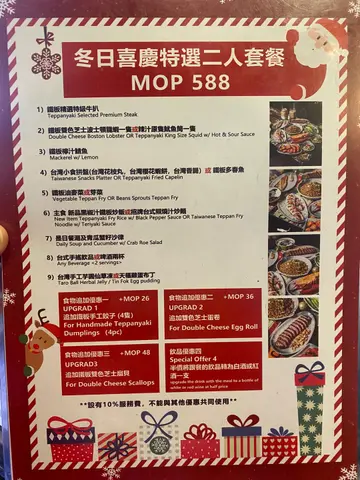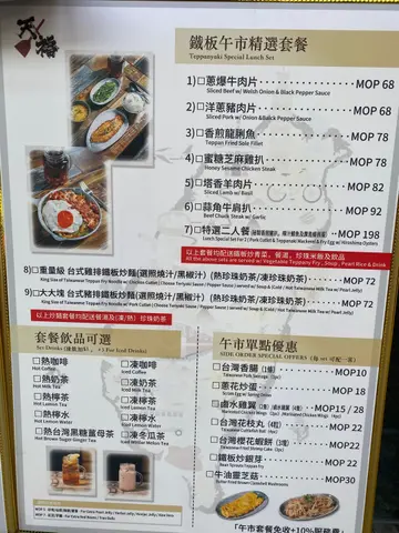 平時大家食席前鐵板燒,價錢都幾貴吓。用抵玩嘅價錢,喺澳門嘅台灣菜餐廳🇲🇴,都可以食到同樣嘅料理🔥!舖頭嘅環境、服務、成個體驗都充滿台灣夜市感覺,師傅技巧純熟😆,淨係視覺效果已經好正。我哋揀咗春日精選二人套餐($438)😍。.🐮M6澳洲肩胛肉眼和牛食落口超級香,有牛嘅味道同埋肉汁,透過鐵板燒嘅方式鎖住喺肉裏面🔥。用棉花同埋黑椒嘅調味,簡單又可以突顯到鐵板燒嘅火候,好香😆。.🐟鐵板香煎黃花魚超級推薦!煎到魚皮超級酥脆💥,不過裏面嘅魚肉好軟身,而且黑椒鹽調味真係好有台灣風味,味道同口感都好滿足🤤。而且份量超多,食落口啖啖肉。.🌊鐵板酸辣汁花甲花甲同樣係火候控制得啱啱好💕,肉質嫩口。而且酸辣嘅泰式醬汁好夠惹味,夠刺激🌶️。.🍱台灣小食拼盤有台灣花枝丸、台灣櫻花蝦餅、同埋台灣香腸。全部小食都整得夠香口👅,而且將台灣夜市食到嘅香口味道帶到嚟呢一餐裏面🌙。.🌱鐵板芽菜簡單嘅燒汁、鹽胡椒調味🧂,配合埋啱啱好嘅火候🔥,令到芽菜食落口感爽口,而且味道香口。.🍝招牌台式照燒汁炒麵真係有滿滿嘅台灣風味😍!好台式嘅蔬菜絲做法,配埋麵嘅質地好食,同埋照燒汁嘅炒法🔥,食落味道有鑊氣。.❄️台灣手工芋圓仙草凍最後唔少得要食埋甜品!除咗有滑捋捋嘅仙草👅,仲有煙靭嘅芋圓同埋其他QQ嘅冰品🫦,混和埋淡奶好正。.🍮天福雞蛋布丁味道好重忌廉嘅奶油甜香味🍬,食落口感覺夠滑,好滿足。.🍹紅芭樂石榴蘆薈蘇打芭樂嘅清新甜味,配埋蘆薈粒同埋梳打好清爽🎐,而且紅色嘅賣相好特別,好夾啲嘢食。.🌹玫瑰蔓越莓蘆薈蘇打除咗望落有好靚嘅玫瑰色之外,真係有玫瑰花瓣💐,同埋淡淡嘅花香味喺裏面,令到果味嘅梳打更加特別。…Read More