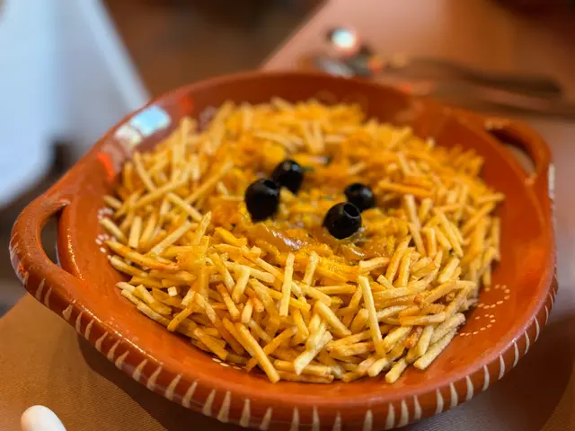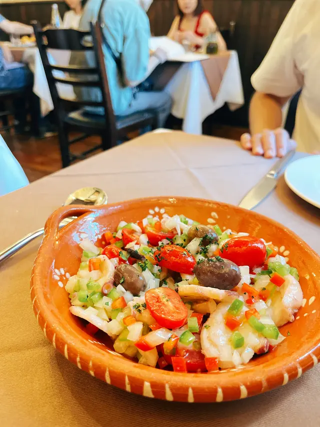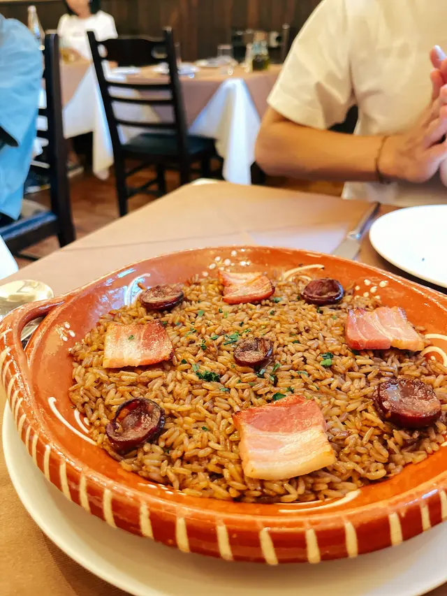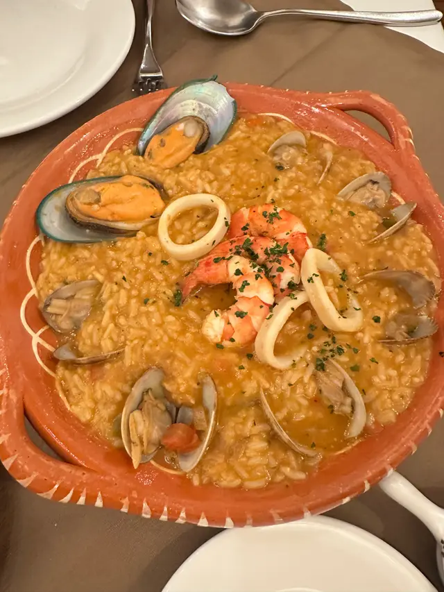 2025.8.29是澳門有名的餐廳,在網上隨意找到,發現挺人氣的,沒有預約,也擔心沒有位,但非常幸運,有位子,平日日子,下午1點半到,也許因為午飯時間已過,沒有預約也能入座,而且不用等,裡面也沒有滿座。餐廳的環境不錯,裝修有點懷舊,店員服務很好,態度友善。軟包是餐廳贈送的,軟軟的不會硬,點的是橄欖醬,味道有點太強烈,不點醬也可。炸薯片很脆,很香濃薯仔味,很飽。海鮮燉飯很多汁,很好,不會乾乾的,香濃龍蝦汁的味道,有魷魚、蜆、青口、蝦,魷魚很彈牙,蜆、青口、蝦也很鮮甜,口感不錯,肉不會霉。馬介休薯絲滿滿的薯絲,裡面藏著馬介休肉,很香,但超飽的。份量很多,吃得超飽。最後來個必點的木糠布丁滿滿的木糠碎,布丁裡面也很飽滿,一層層很多蛋糕和cream,不是空氣感那種,也吃得飽飽,兩個人分享一個試試也ok。梳打水…查看更多