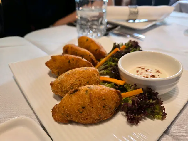 葡式蟹肉釀蟹蓋、炸馬介休球、混合蔬菜沙拉