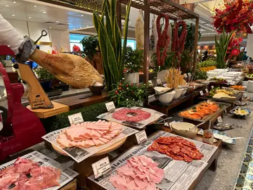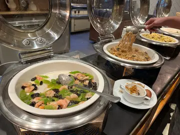 這天被巴黎人的自助早餐吸引了,自助早餐用餐時間為早上七點至中午一點。從未見過自助早餐可以食到中午,所以不禁勇於一試。酒店餐廳環境裝潢美觀,不用多談。重點是食物質素也很好,選擇也很多。人流絡繹不絕,但食物供應不斷補充。最吸引的是竟然早餐也有龍蝦和扇貝,這些貴價食材。是現點現煮的,熱辣辣的佳餚更加加分。沒有限制點的數量,但當然大家要量力而為。🤭熱食的菜式選擇不算太多,但勝在質素不錯。喜歡西式早餐的朋友一定會很滿足,火腿款式很多選擇。甜品和麵包區選擇很多,很想每一款也試試,但只嫌肚子撐不下了。總括而言,這間自助早餐性價比很高,每人$400有找,不妨一試。…查看更多