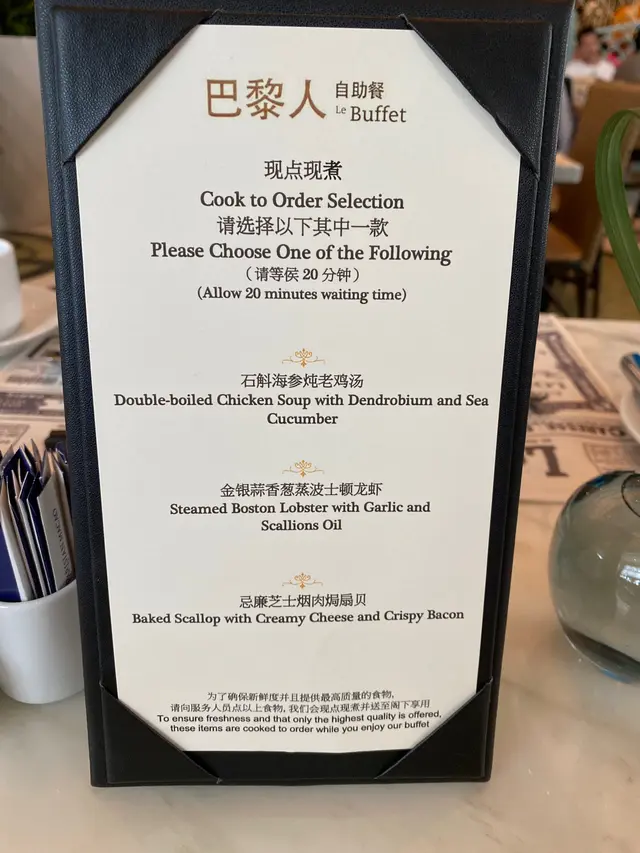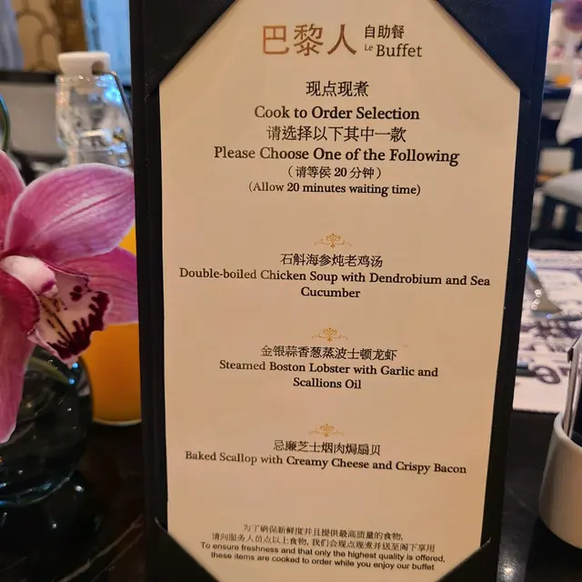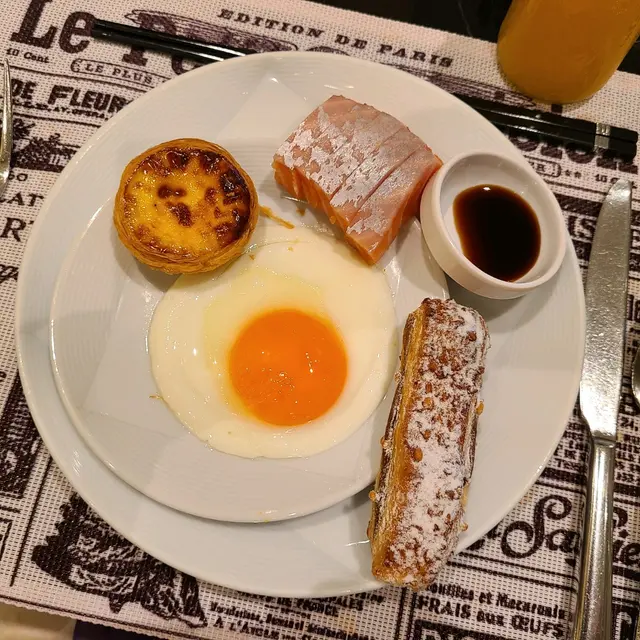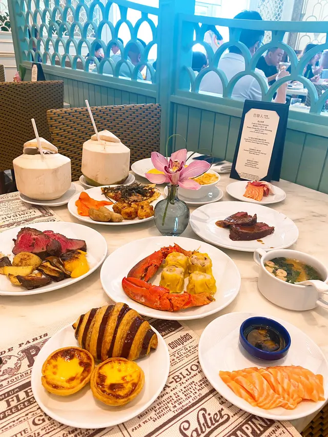 這天被巴黎人的自助早餐吸引了,自助早餐用餐時間為早上七點至中午一點。從未見過自助早餐可以食到中午,所以不禁勇於一試。酒店餐廳環境裝潢美觀,不用多談。重點是食物質素也很好,選擇也很多。人流絡繹不絕,但食物供應不斷補充。最吸引的是竟然早餐也有龍蝦和扇貝,這些貴價食材。是現點現煮的,熱辣辣的佳餚更加加分。沒有限制點的數量,但當然大家要量力而為。🤭熱食的菜式選擇不算太多,但勝在質素不錯。喜歡西式早餐的朋友一定會很滿足,火腿款式很多選擇。甜品和麵包區選擇很多,很想每一款也試試,但只嫌肚子撐不下了。總括而言,這間自助早餐性價比很高,每人$400有找,不妨一試。…查看更多