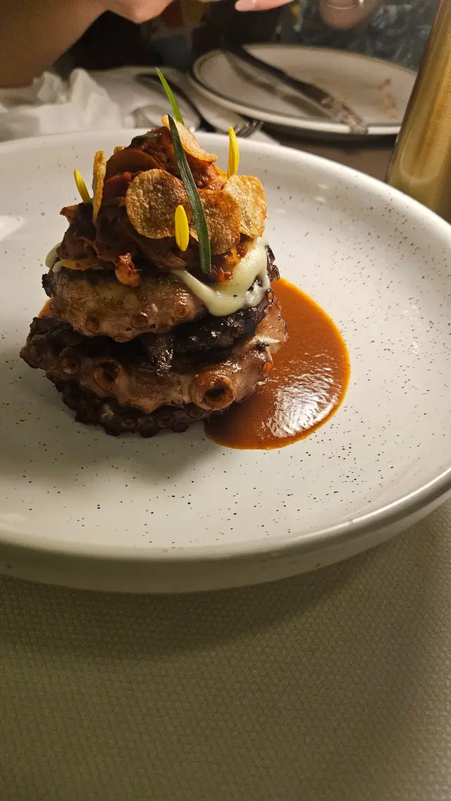 蘋果木熏八爪魚配燴甜椒及薯蓉伴迷迭香汁