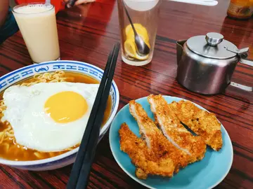 相信好多人熟悉,基本每台必點招牌炸豬扒,個人覺得自製辣油好正,辣味較重,微麻香,食完成身汗出番黎,睇來我低估左佢!.🍜炸豬扒公($38)為左唔比個湯浸軟,兩塊炸豬扒會斬件分開上,呢間炸豬扒偏薄,睇落紙皮咁,feel到粉漿亦調左味,炸得非常香口,豬扒夠入味,食落乾身香脆,係佢出色之處,如果鐘意食軟身有肉汁豬扒,呢到可能唔岩你啦!而個公仔麵就係普通出前一丁😅。🍳蛋 ($6)加隻太陽蛋靚仔曬,可惜價錢唔精神。維他奶 ($12)最鐘意茶記先有枝裝維他奶。不能否認炸豬扒的確好味特別,但總體以一個炸豬扒麵來說性價比不高,呢個價錢可以有更好,睇個人口味啦!.(每月的1. 11 和 21號休息)