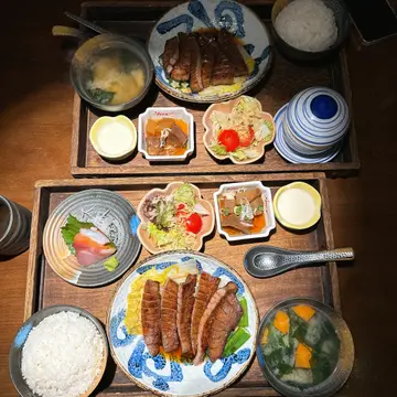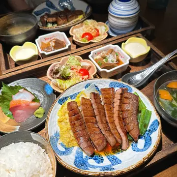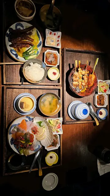 去到澳門必定去官也街行個圈先,見到呢間居酒屋係新開,上網睇一睇好多人讚午餐既牛舌定食好正,喜歡吃牛嘅我,梗係入去試下😋所有定食除咗配前菜、沙律、味噌湯同甜品之外,仲可以喺三點刺身/茶碗蒸/稻庭烏冬之中三選一~ 牛舌外脆內軟又juicy,果然係招牌😋下次要再食!月見燒鳥定食一共有4串,雞柳同雞棒好食,雞胸就麻麻地有少少嚡🫣呢度仲有少見既雞提燈,黎到記得試下😌整體上環境非常好,坐得好舒服,牛舌定食💯分,下次都會繼續食❤️
