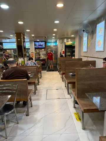 這家是老字號,以雞湯米馳名。我點了雞湯米,外加油菜一碟。先喝湯頭,雞湯香濃,不錯!食材除了雞肉和米粉,還有冬瓜、雲耳和紅棗。雞肉有大約六件,有雞味,好吃,冬瓜、雲耳和紅棗等配菜也好吃,米粉頗多,吃得我飽飽的。灼菜心份量頗多,菜夠軟,有菜心的甜