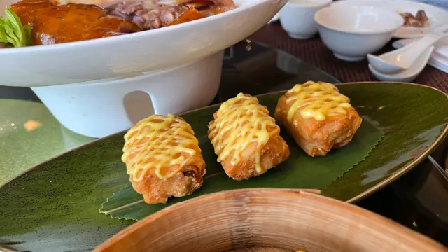 古法明爐脆皮燒鵝~肥美厚肉,外脆內嫩,肉質鮮滑,香口入味。各人自選一款點心~蠔皇叉燒包、原龍鮮蝦餃、明蝦蟹子燒賣、什菌帶子海鮮餃、風味腊腸卷、鬼馬芝土燒寶卷,各款點心都有特色,很惹味,但我最喜歡鬼馬芝土燒寶卷,脆口又彈牙。吃完點心便點了紅燒豆腐斑腩~紅燒豆腐炸得好香口,而斑腩就不過不失,獻上時都熱氣騰騰,倍增惹味