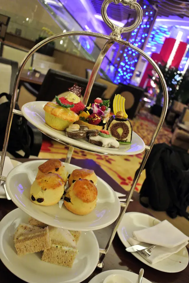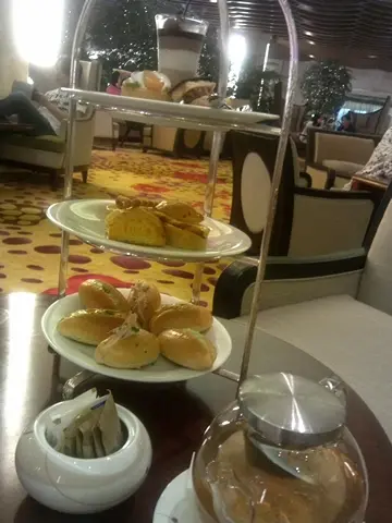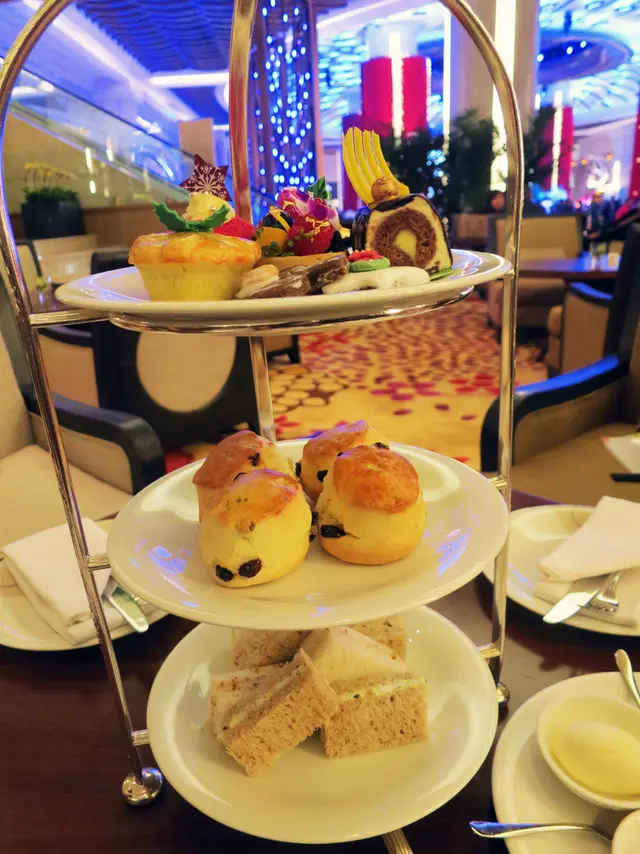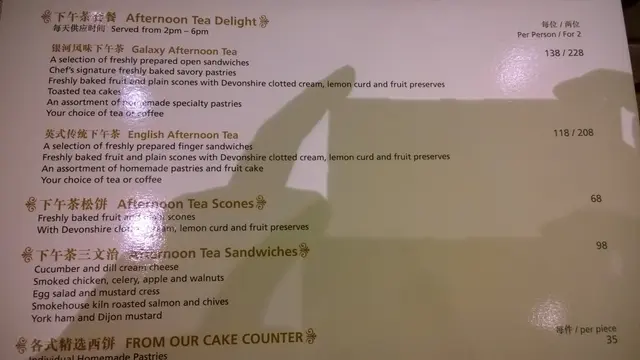 為食的我 ...見到這些幾可亂真的蛋糕很容易就吸引了過去全部蛋糕都好精緻 ... 靚到唔捨得食 ... 但是這些小巧精緻的蛋糕就食得喇 !!! 而且仲好抵食 ... 一款蛋糕配咖啡或茶 ... 只是 MOP58但是只限於 10AM 至 3PM 這個時段現在 5 點多,剛過了優惠時段,正想走的時候,服務生就話有另一個優惠 ...就是飲品買一送一,仲可以點不同的飲品 ... 又幾好喎咁就坐下嘆杯咖啡食件 cake一坐下,兩隻小魔怪就點了他們心儀的 cake粉紅色咁 fancy 的紅桑莓伯爵茶蛋糕 MOP35 一睇就知是囡囡的酸酸甜甜的紅桑莓醬包著紅桑莓 mousse 和伯爵茶蛋糕,味道很清新榛子朱古力蛋糕 MOP35 是朱古力怪囝囝點的濃郁細膩的榛子朱古力醬包著了香濃幼滑的朱古力 mousse,裡面仲有脆卜卜的脆片增加口感真是好好味,啱哂這個朱古力怪呀 !!!飲品就點了一凍一熱特式冰茶 ... 覆盆子蜜茶 MOP45 ... 賣相真是好得,即時影相呃 LIKE 先首先讓這大壼覆盆子茶浸多幾分鐘至出味,再倒入大壼冰裡面即時降溫之後就可以倒入杯加糖漿調味,就飲囉不只賣相精緻,仲好大份 ... 足足有 2 杯正常凍飲的份量熱的 Mocha Latte MOP40 ... 拉花散了 ...不過都是好大份 ... 大杯到囝囝都問真是咖啡 ? 點解成碗湯咁大 ?在酒店的咖啡室舒舒服服的嘆杯咖啡食件 cake ... 仲係大大杯那種只是盛惠 MOP133,係咪好抵呢 !!!** 以上分享是以我的口味、喜好和情況作出分享和感受,一試 / 合用與否請自行決定…查看更多