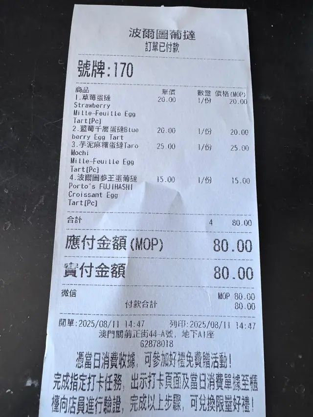 波爾圖 (氹仔舊城區) 網址: https://s.openrice.com/QrbS1odO000 地址: 澳門氹仔舊城區地堡街泉福新村第1期第4座嘉開閣地下 電話: +853 28823318