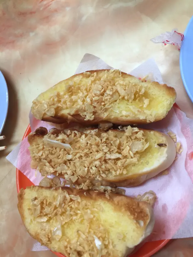 蒜蓉包上佈滿新鮮炸的蒜片,蒜香撲鼻,一咬上脆下軟,沒有一點油膩感