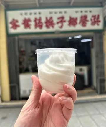 #29072023澳門老店 - 洪馨椰子梹葯發客 - 椰子雪糕🥥之前去澳門既時候已經想試呢間,都見到有好多人介紹。但第一次去到模門釘,唔知點解無開;第二次就晏晝4/5點去到,已經賣曬。今次食完個lunch兩點前到🕑終於食到!杯雪糕要$25,唔算平唔算貴?!味道真係好~~~~椰子味,好似食緊杯凍冰冰既椰汁咁。如果你係椰子fans就一定要去試下。雪糕質地唔算好滑,但味道好濃,食落就好似除咗椰子無其他🤣🤣🤣