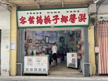 在澳門舊區,真的有唔少老店,服務了澳門百幾年,做了好幾代人。有些,可能不是太出名,默默地繼續他們的家族生意。有的,因為有追上了時尚的新產品,再加上後人懂得宣傳或得到澳門旅遊局的加持,當然還有各大小社交媒體的加持,而變成今時今日的人氣好店。這次澳門行,我專程帶小朋友來的《洪馨椰子梹蒟發客》就是其中的一間人氣百年老店。大家為的,是店主自製的鮮椰子雪糕。據說,這《洪馨椰子梹蒟發客》早在清朝時代已經開業,至今已經是第四代人在經營。此店,如其名,本身是一間專門進口馬來西亞的椰子專賣店,"槟" 指的是檳榔,而"蒟" 指的是青蒟,是一種馬來西亞產的草藥。而 "發客" 的意思就是批發商。而《洪馨椰子》,主打的,始終是椰子。在80年代,因為鮮椰子的銷售不理想,店老闆就把新鮮的椰子製成雪糕,自此,《洪馨椰子》就變成了澳門的雪糕名店。而且,老闆堅持新鮮製作,賣完有就關門,所以一定要早上去。《洪馨》的椰子雪糕,有著濃濃的椰子香味。入口很冰凍,也很滑。因為是純椰子汁的關係,吃起來沒有奶味,也沒有太多奶的口感,是完美的椰子汁味。口感,其實像雪葩,入口很是清新,而濃濃的椰子香,就是這東西吸引人之處。值得來朝聖,尤其現在附近的關前正街,關前後街變成了旅遊景點,來找這《洪馨椰子梹蒟發客》也不用很專程過來。只是一大班遊客企係那窄窄的路邊食雪糕及其製作的其他產品,感覺有少少危險姐。身為一名遊客,這椰子雪糕,係值得來試下既。