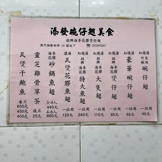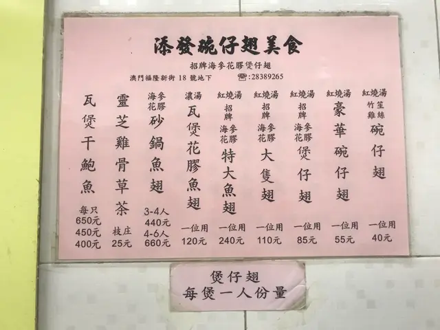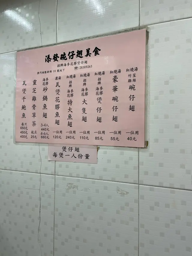 今次比朋友帶咗去澳門食翅老字號嘅鋪頭,佢地全澳只此一家,絕無分店,所以經常有好多人喺門口排隊。雖然平時唔食翅但一場黎到決定試下係咪真係好食到要排隊咁誇張!總評分:8.5/10••••••••••••••••••••••••••••••濃湯瓦煲花膠魚翅 (1位用) $120 ★★★★☆👉🏻 入面有6嚿花膠、2塊魚翅同大量雞絲💬 上枱仲keep住滾,湯底冇紅燒咁濃味,適合冇咁重口味嘅朋友周圍都係食翅嘅澳門餐廳黎講朋友覺得呢間算唔錯,價錢有高有低,豐儉由人,大家有興趣可以一試,我地星期六晏晝去排咗15分鐘。建議避開食飯時間,唔洗等咁耐。🍽 添發碗仔翅美食📍 新馬路福隆新街18號地舖…查看更多