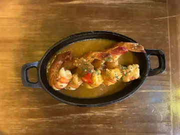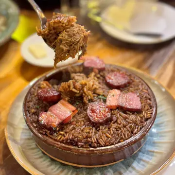 🍴蒜香蝦 $128 5pc蒜香味都幾香嘅,唔會太鹹蝦肉係新鮮蝦肉都大隻彈牙!🍴馬介休球 $78 4pc一絲絲嘅魚肉,比較鹹香少少,但係唔會太鹹都OK嘅!🍴白酒煮蜆 $198蜆肉個份量好多,食落去都大隻,不過有少少沙,白酒都幾香嘅切咗檸檬之後呢就比較開胃!🍴海鮮燴飯 $298海鮮係新鮮嘅,落得好多青椒洋蔥,飯感比較濕潤帶有少少鹹鮮味嘅都幾好食!推薦指數: 8/10算係澳門食過比較好食嘅萄國嘢!