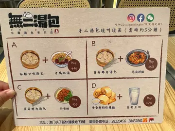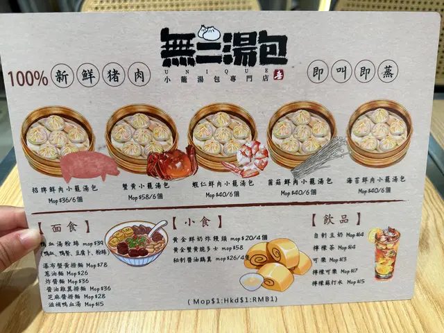 讀書時有天地堂,旅行時有天地Schedule,想不到行程看似緊湊,還是空出了兩三小時間場期間,憶起在覓食清單上長期待完成的一項——無二湯包小籠包當然是店家的拿手好戲,年前再因其用料十足的蟹黃撈麵跑出可惜晚上早有安排,須顧及胃納,還是只點輕盈些少的小籠包過過口癮算了話雖如此,看著五款各有特色的小籠包,我們還是忍不了手點了其二標榜即叫即蒸,其實不至久等,聊著聊著就見蟹黃小籠湯包 MOP58熱氣騰騰地上桌薄皮煙韌不糊,湯汁不少且略帶黃油,滲香而不腥,肉餡不感肥膩,調味帶甜但恰到好處至於海苔鮮肉小籠湯包 MOP40都不遑多讓,本以為會明顯地給比下去,但憑紫菜香挽回地理位置不是平日常去的遊客區,若然有緣再會,會想試試撈麵和其他口味的小籠包呢!…查看更多
