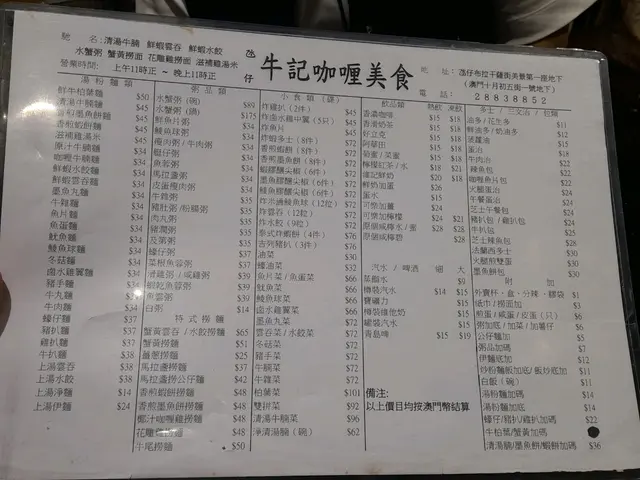 牛記咖喱美食 (氹仔舊城區) 網址: https://s.openrice.com/QrbS1q60000 地址: 澳門氹仔舊城區布拉干薩街美景花園第一座37B號舖 電話: +853 28838852