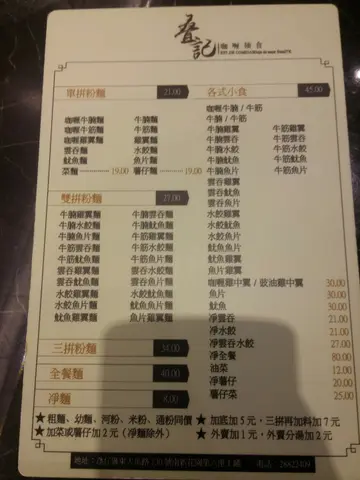 疊記咖喱麵食 (花城區) 網址: https://s.openrice.com/QrbS1zZ0000 地址: 澳門花城區廣東大馬路南新花園第6座 電話: +853 2882 2409