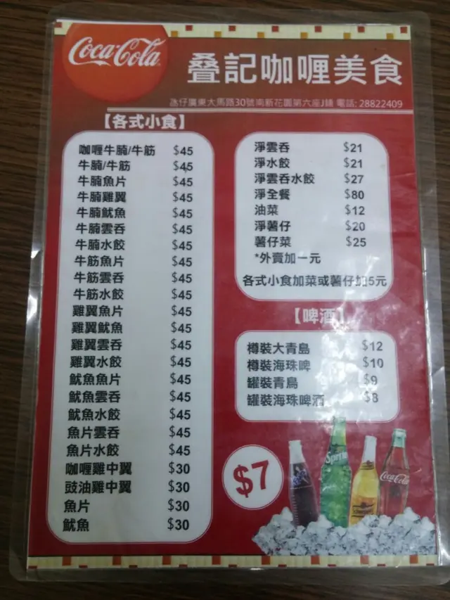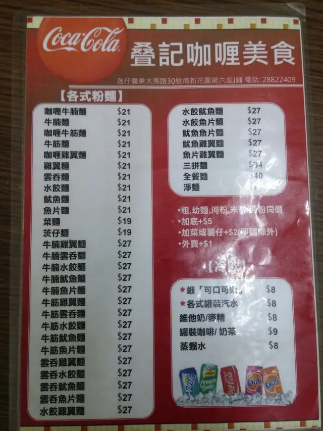 疊記咖喱麵食 (花城區) 網址: https://s.openrice.com/QrbS1zZ0000 地址: 澳門花城區廣東大馬路南新花園第6座 電話: +853 2882 2409