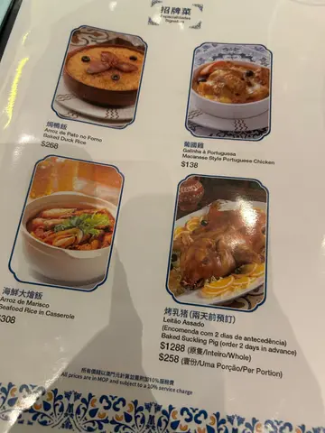 係澳門食過咁多次葡國餐,依間都真係最難食既一間,仲要等位,真係唔明白咩事。唯一好處可能就係有百老匯酒店既賭場會員卡有9定95折,但有折我都真係唔會再食!我地點左馬介休球、香燒牛肋骨同葡國雞。🤢香燒牛肋骨一黎既時候,已經覺得好cheap,牛仔骨黎咋喎,好似茶記叫扒咁,味道同個樣一樣極普通;🤢之後黎葡國雞,望落個樣好似好d,但d雞又係差啦,本身完全無味,葡汁既味同大家樂個葡國雞飯無咩分別,分分鐘大家樂既仲好食。等緊依兩樣既時候已經覺得馬介休球係咪漏左單,因為遲黎既人都上左馬介休球,但見到依兩樣咁既質素,真係多謝佢漏單……查看更多
