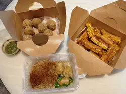宵夜好朋友,想黎嘅人有心理準備等位都要起碼半個幾中,再入去等小菜都要九個字,我地最後放棄。。叫外賣(都等九個字)。下次要食,打電話📲叫定外賣黎拎!個到走。。另一難題係好難截的士🥲🥲🥲.Overall幾好食!不過要等咁耐,同價錢有啲貴,可能一次就夠~~😌.炸鯪魚球 $120(8粒)鯪魚好彈好實淨!出邊加埋米通,脆卜卜😌好香口,重點係一啲都唔油👍🏻👍🏻正.椒鹽粟米🌽$88好香口💓有少少辣,好少係出邊食到!送沛一流~~.雲吞蟹子撈麵🍜$78可能外賣🥡加無俾湯嘅關係,個麵變得好硬,但個雲吞都真材實料,好彈牙同實淨😌👍🏻查看更多