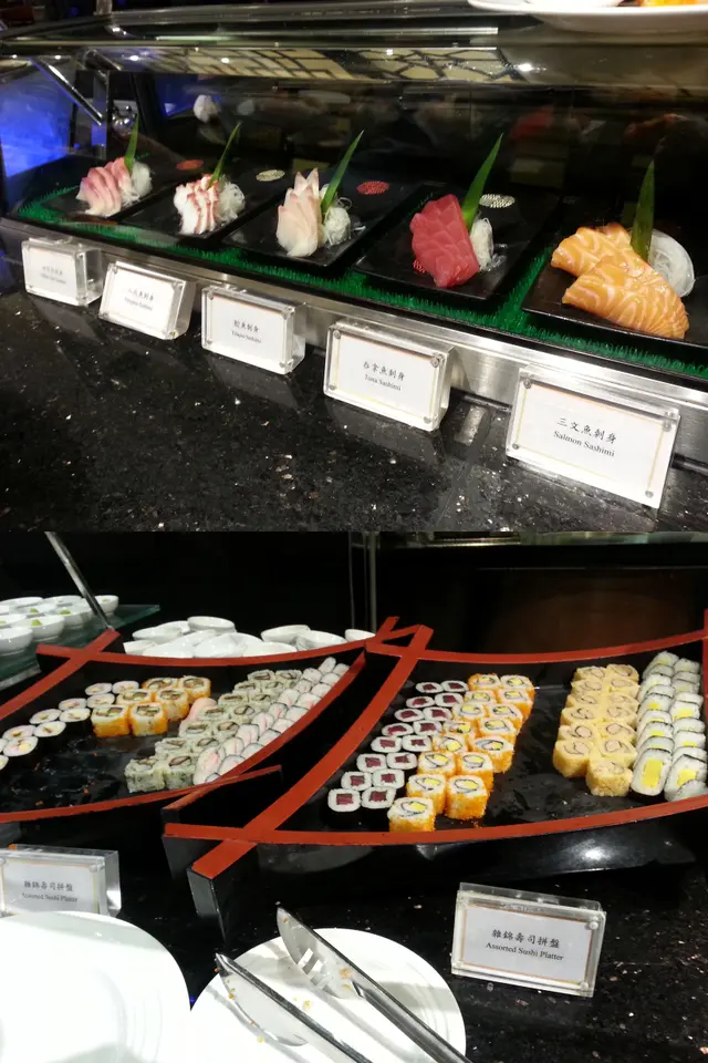 月中收到個好消息值得慶祝,懶懶的我為了方便什麼都不用考慮不用想之下決定吃自助餐口袋名單中有3家想試,之不過有2家在氹仔不想花時間來回,反正價格也差不多,只在於有沒有生蠔所以最後決定了去新葡京,衝著生蠔而來啊~這擁有超過70米 ( 230呎 ) 長的自助餐食物檯,熱葷、湯品、麵包等的都在入口附近而最裡面的是沙律、海鮮、刺身類的,準時抵達但還沒開始入座 只好乖乖排隊等候入座後,我的首要任務不是開始取食物而是拍照,但大多客人都好像很餓似的 有點鬧饑荒的感覺,2隻手拿3個盤子每款熱葷都沒驚喜,被亂切的燒有骨澳洲肉眼牛扒 肉柴又韌填肚料卻很少的粉麵檔,肥膩的各種燒臘,當中現烤的沙嗲豬肉串 與 雞軟骨串還不賴,味香肉嫩同時也是搶手貨這邊炸物就非常遜色,大多都偏油膩~ 可能因為現炸的關係,來不及隔油吧但炸蝦用的是虎蝦就很ok嚕,扎實爽彈的質感,可惜也是重油膩感乾淨大大的池放滿許多蝦子,新鮮肥大的羅氏蝦...嘿嘿,下一秒就變白灼以炸為烹調方式的菜都還蠻多,這道黃金香酥炸雞 賣相可以 但沒啥味道而牛肋骨有著濃濃的黑椒香,肉嫩順口又惹味看過了熱葷後,對甜點已經沒抱太大期望的說款式頗多,大多都是以精緻小巧為主左上是第一碟刺身,質素差到不能入口啊!!肉質很乾 味不鮮還有渣最後不甘心再試只拿了三文魚,品質好很多 有點圓潤脂滑的FEEL巨大的蝦子肉質很扎實鮮甜,蝦膏是偏少衝著它而來的呢?! 太平洋半殼生蠔 不爽不鮮不夠冰凍,有夠失望了啊有些東西會不停的Refill,但沙律類就不會嚕配給的清蒸鮑魚每次2件,第一輪蒸得比較好 鮮甜爽脆,之後的呢根本咬不開啊這盤熱葷是當晚唯一滿意的,那牛仔肉肉嫩又滑 煎得剛好總是要嚐甜點,意外的好吃呢特別是 Tiramisu 芝士味香濃又細滑 偏濕潤又帶酒香現做班戟也滿意喔,配的醬汁選擇也不少自助山的味道質素不一定是最好,但價格確實是划算,晚上的自助餐分2個時段 6:00 - 8:00 / 8:30 - 10:30 !!老實說很趕時間,而且吃不夠半小時就已經有人來催促買單了,頗失望的…Read More