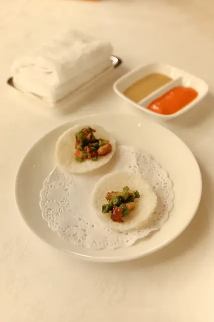 父親節當天,我地揀左去葡京酒店 "日麗" 飲茶!葡京酒店是澳門一流的高級中菜廳,在氹仔開發之前,就已是眾所周知的中式高級餐廳。這次我地特意來試一試他們的傳統點心。我們品嚐了以下點心:- 懷舊豬膶牛肉腸- XO醬香煎珍珠雞- 鮮菇鵪鶉蛋燒賣蛋燒- 荔茸鳳尾蝦- 蛋白杏仁茶豬膶牛肉腸是一道少見的點心,腸粉滑嫩可口,令人印象深刻。老公讚賞XO醬香煎珍珠雞的美味,糯米雞經煎後,口感酥脆,味道十分香濃。鵪鶉蛋燒賣賣相獨特,淋上豐富醬汁,發現底部竟藏有一片冬菇。鳳尾蝦炸至鬆脆,搭配芋頭香氣撲鼻,美味無比。雖然蛋白杏仁茶不在點心紙上列出,但聽朋友介紹說這裡的杏仁茶無與倫比,果然非常美味。杏仁香氣濃郁,我偏好少甜些,覺得甜度稍高,老公則認為味道恰到好處。甜度口味因人而異,但這份杏仁茶值得一試,絕對推薦。…查看更多