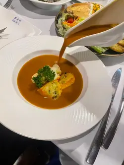 🥬【青菜湯】超級道地的葡式風味!馬鈴薯打得綿密細滑,湯體濃郁順口🌱🍵~香腸的鹹香簡直是靈魂點綴🔥,搭配橄欖油香氣,每一口都是滿滿幸福感💖!絕對是必點推薦👍🌟!!!🐙【八爪魚沙律】真材實料!滿滿的章魚粒份量超足🐙💥,海鮮味在口中爆發🌊~章魚彈牙不韌,搭配橄欖油與醋的清新調味,酸爽開胃💫!洋蔥與香菜的香氣更是畫龍點睛🌿🍋,作為開胃菜完美首選💯👏!🍶【白酒煮蜆】餐前小食的極品!份量誠意十足🦪✨~醬汁鮮甜美味令人驚艷😍,蜆肉飽滿無沙,口感嫩滑!滴上檸檬汁更添清爽風味🍋💫,一口接一口停不下來~超級推薦🌟💖!葡富軒絕對是澳門必訪美食聖地🎉🇲🇴!每道菜都充滿驚喜,味道正宗、用料實在~快來體驗這趟味蕾之旅吧🥳💕!…查看更多
