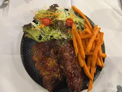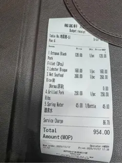 澳門真係好多葡國餐廳,今次就係氹仔呢邊試咗呢一間葡式海鮮飯呈現出濃郁的地中海風情醬汁包住各式海鮮,散發出濃郁香氣,令人垂涎。海鮮鮮美❤️蝦好大隻、蜆又夠多、青口飽滿,口感彈牙、鮮味十足。飯底吸飽海鮮精華,口感濕潤,超好味❤️❤️炙烤八爪魚及黑毛豬柳串🤩融合了海陸雙重風味,是一道視覺與味覺兼具的創意前菜。估唔到有幾夾㗎喎❤️👍🏻炙烤後嘅八爪魚口感帶有微焦香與彈牙口感,呈現煙燻與海味交融的層次。黑毛豬柳油脂分布均勻,肉質細嫩,炙烤後帶有濃郁肉香。吐司吸收肉汁與醬料後,提升整體層次。炙烤豬肋排配葡萄牙波特酒醬🤤🤤豬肋排表面搽滿波特酒醬,香氣四溢❤️帶有天然甜味與果香,與肋排的煙燻風味融合,應該呈現出甜中帶鹹、酒香濃郁的層次。豬肋排外層微焦、內裡軟嫩,入口即化。番薯條酥脆可口,帶自然甜味❤️❤️份量都幾多❤️呢個龍蝦濃湯展現了高級餐飲的精緻與深度,好有儀式感😳❤️香芹與菌菇類點綴❤️增添香氣與口感層次🤩龍蝦肉質彈牙且細嫩口感,帶有天然甜味與海洋鮮香。好飲到停唔到口😳😳😳