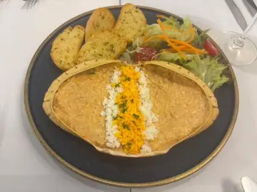 今次同朋友黎澳門, 途中發現到呢間隱世葡國餐廳, 入面有兩個樓層, 環境細小但充滿葡國風情 ❤️點左幾款食物:薯絲馬介休酥皮蘑菇濃湯主廚特製蟹肉釀蟹蓋葡式烤豬肋骨葡國菜通常都會叫馬介休, 撈埋薯絲一齊食都係第一次, 脆口之餘咸香味十足 😋 豬肋骨烤到骨肉分離, 肉質軟腍, 加左秘製香甜醬汁, 好入味! 一定要特別提個蟹蓋, 好大隻, 入面有大量蟹肉, 點包食好好味, 會食唔停 🤩 側邊仲有啲沙律等你食到中間可以中和下, 然後再繼續食, 非常有心思。