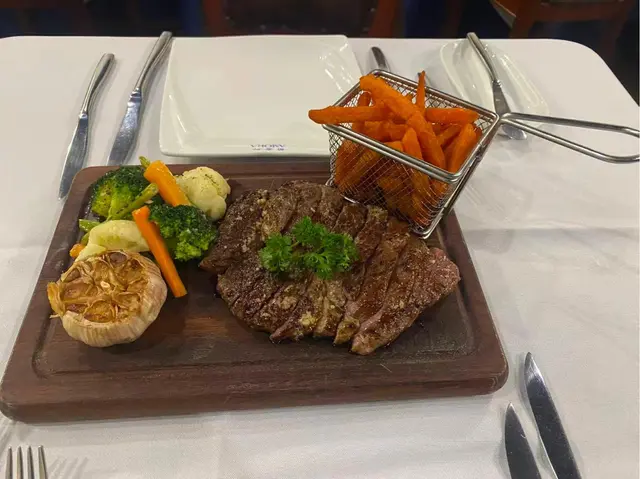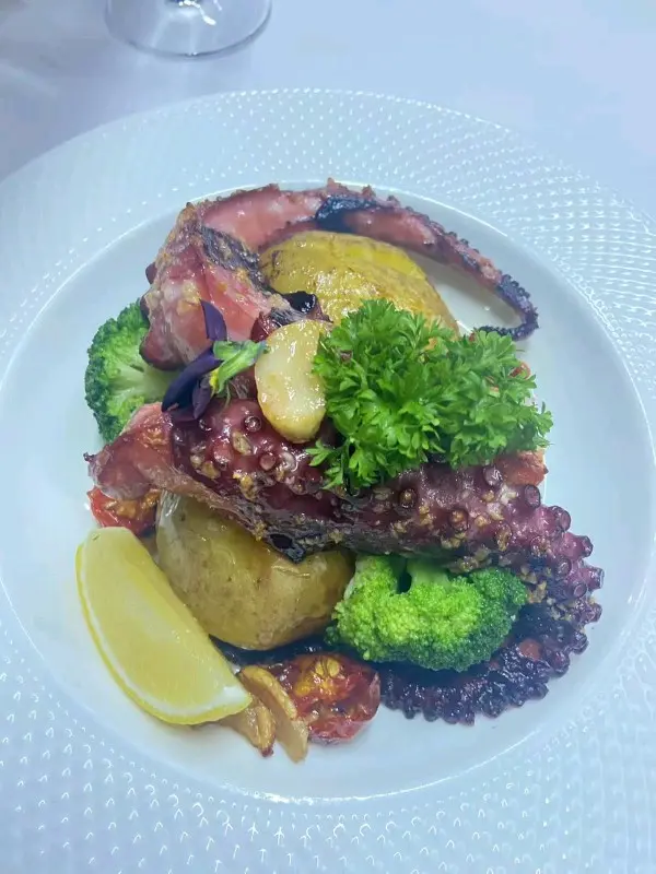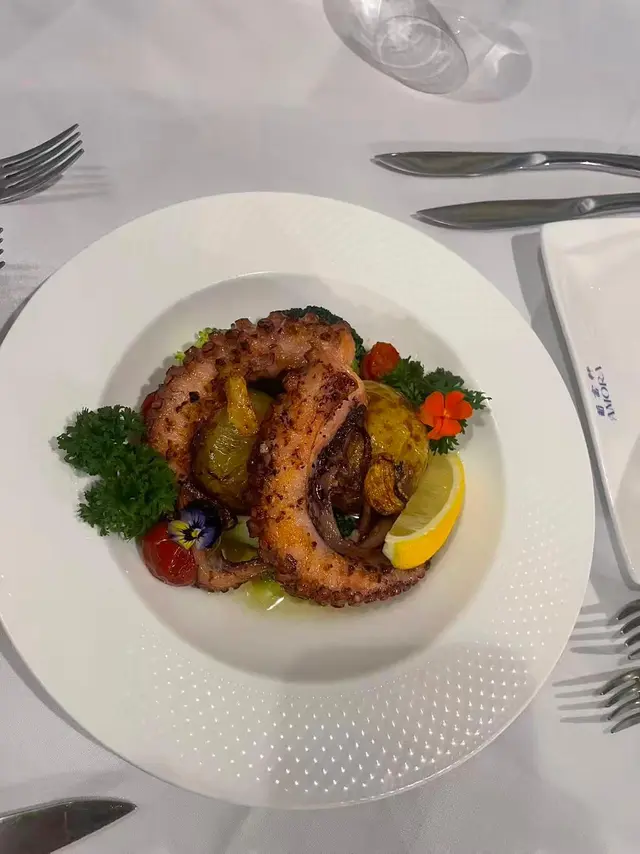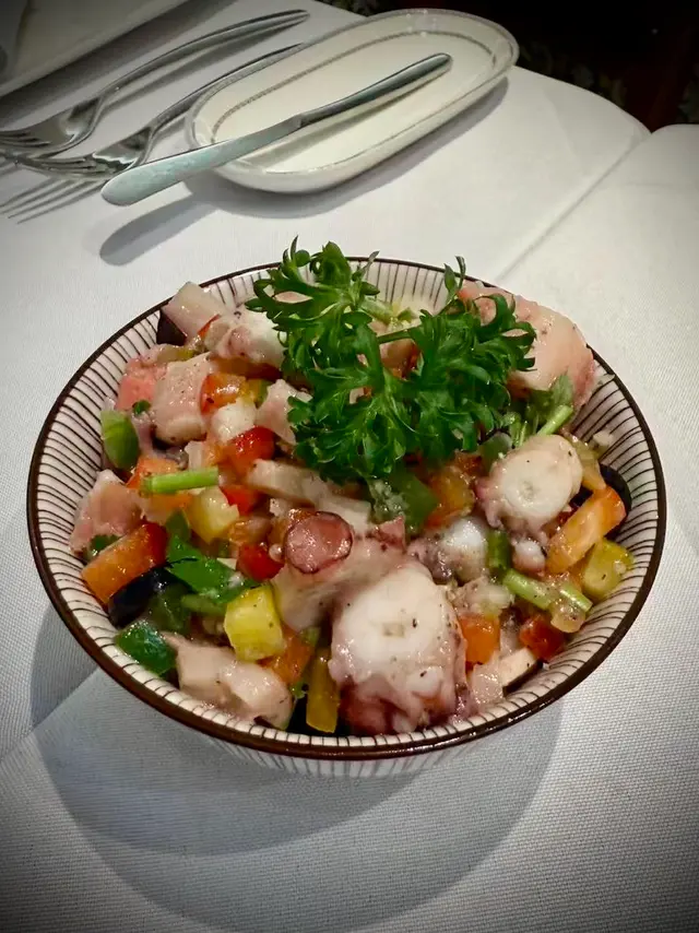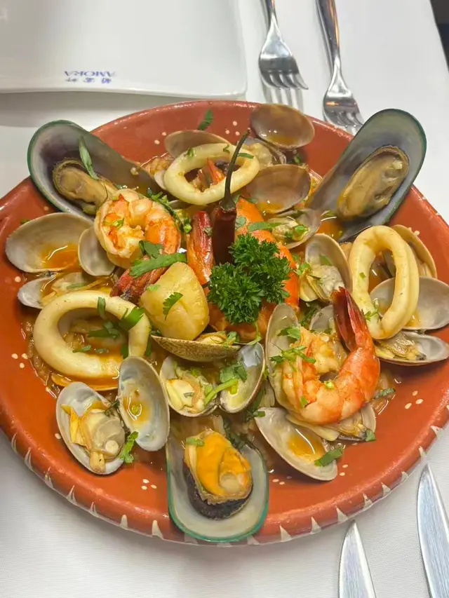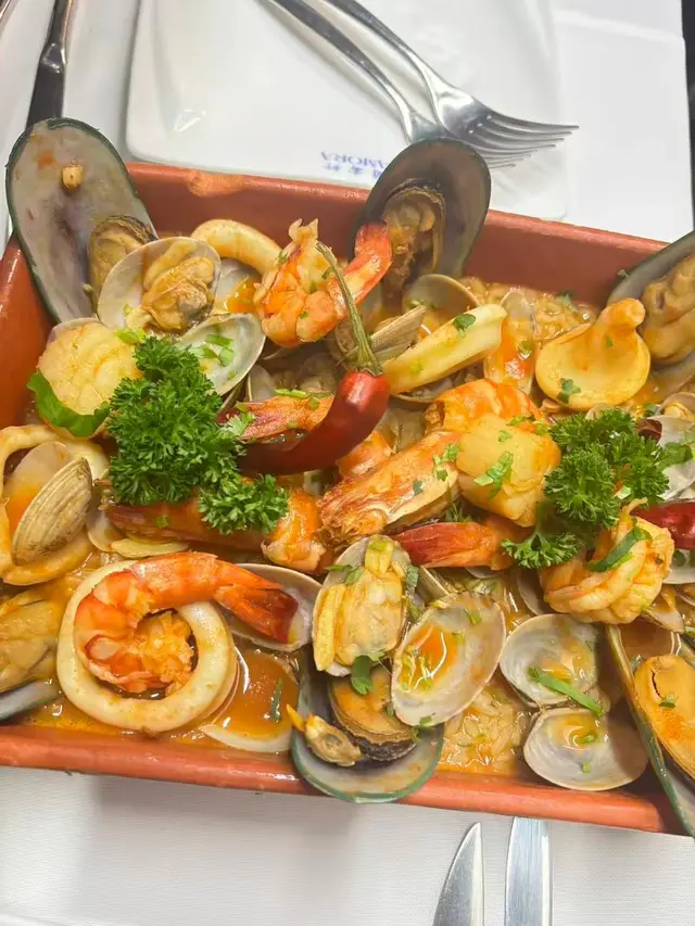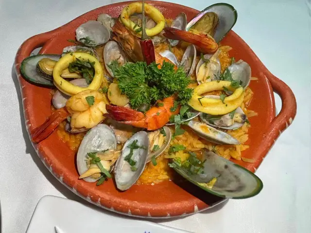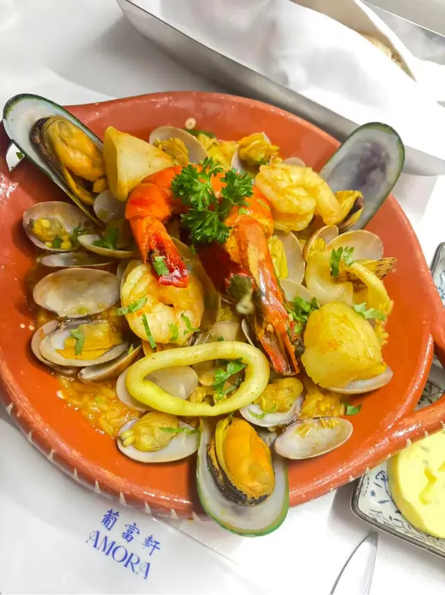 葡富軒展現正宗葡國風味,值得一試。📌炙烤八爪魚及黑毛豬柳串八爪魚口感彈牙不韌,炙烤後帶有微微焦香,橄欖油與香草調味恰到好處。黑毛豬柳肉質鮮嫩, 油脂分布均勻 ,與八爪魚形成對比, 層次豐富。適合搭配葡萄牙白酒享用。 📌葡式海鮮飯份量十足、海鮮新鮮 飯粒吸收了海鮮湯汁, 濕潤但不糊爛,蝦、蜆、魷魚等配料豐富。 📌葡式牛排採用厚切牛排, 外層煎至微焦,內裡保持多汁 。肉味濃郁,熟度掌握得宜,是喜歡肉類主菜者的好選擇。整體而言,葡富軒不僅菜式水準高, 環境具葡萄牙風情,裝潢以藍白花磚為主,氣氛溫馨,適合朋友聚餐或情侶約會。…查看更多