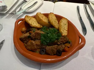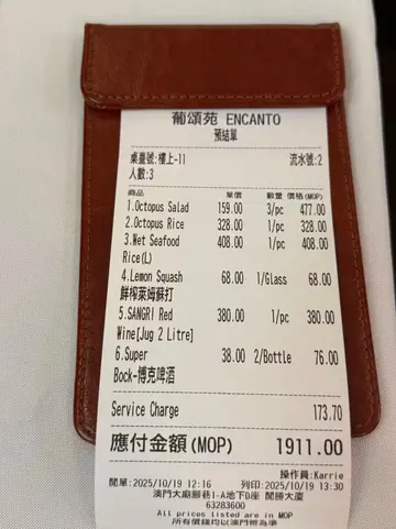 8月最後一日🤭澳門一日遊❤️今次試下呢間係新馬路嘅葡頌苑❤️門口裝修好靚,好有葡國風格❤️四個人一齊試新嘢🤣人都可以試多啲真係好🤭章魚沙拉呢款章魚沙拉色彩繽紛、清新爽口,絕對係一道令人食指大動嘅前菜。主角係切成啖啖肉嘅章魚,質感彈牙,配上黑橄欖、紅黃椒粒、洋蔥碎,再加上新鮮芫荽點綴,視覺同味覺都好有層次❤️❤️推薦🔥🔥🔥葡式海鮮飯有大蝦、蜆、青口、魷魚圈等海鮮,鮮味十足,配上香草、橄欖油同香料慢煮,令每一口都充滿海洋氣息。面頭仲加咗新鮮芫荽,唔單止提香,仲令賣相更加吸引。味道鮮甜中帶微辣,令整體層次更分明❤️好食到停唔到口❤️白酒炒蜆黎到嘅時候已經香氣撲鼻,睇見都流口水!蜆肉飽滿鮮甜,配上蒜蓉、香草同白酒慢炒,湯汁清澈中帶微酸,完美釋放蜆嘅鮮味💖💖必食推薦🔥🔥🔥葡式風味辣醬烤雞配脆皮地瓜及沙律 賣相一流,色香味俱全🤤🤤香辣烤雞以葡式方法醃製,外皮烤至金黃微焦,肉質嫩滑多汁🤤辣中帶香,啖啖肉真係正❤️地瓜條炸至外脆內軟,數量都幾多🤭❤️仲有一個新鮮沙律菜,平衡成件事🤭焦糖布甸表面鋪上一層幼細砂糖,再用火槍即場燒至焦糖化,形成一層薄脆糖衣。畢落去嘅時候,先聽到「咔」一聲,布甸甜而不膩,必食推薦🔥🔥🔥嚟到澳門放縱一下🤣 好味嘅真心推薦❤️❤️值得一試❤️❤️❤️要收加一服務費🤭…查看更多