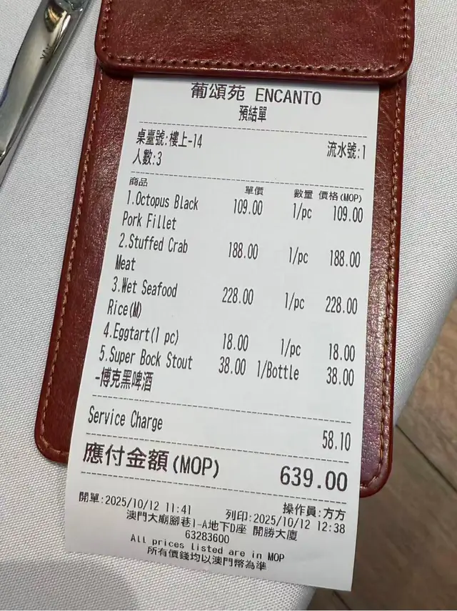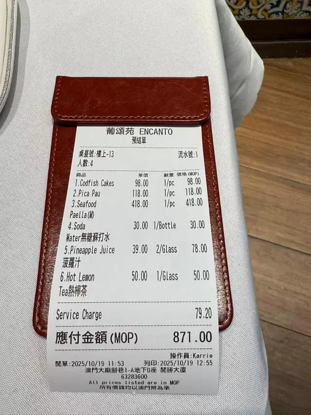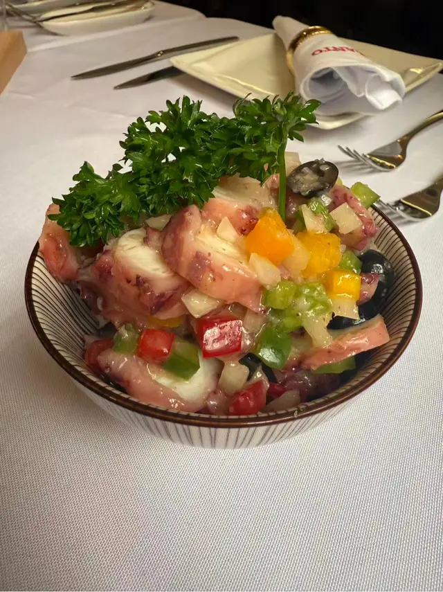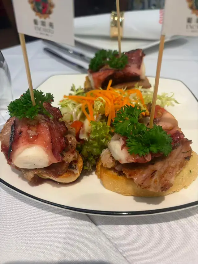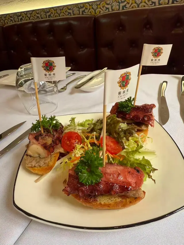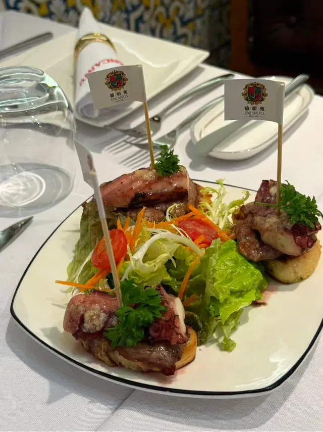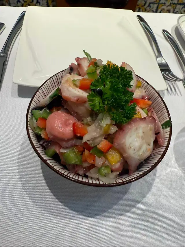 8月最後一日🤭澳門一日遊❤️今次試下呢間係新馬路嘅葡頌苑❤️門口裝修好靚,好有葡國風格❤️四個人一齊試新嘢🤣人都可以試多啲真係好🤭章魚沙拉呢款章魚沙拉色彩繽紛、清新爽口,絕對係一道令人食指大動嘅前菜。主角係切成啖啖肉嘅章魚,質感彈牙,配上黑橄欖、紅黃椒粒、洋蔥碎,再加上新鮮芫荽點綴,視覺同味覺都好有層次❤️❤️推薦🔥🔥🔥葡式海鮮飯有大蝦、蜆、青口、魷魚圈等海鮮,鮮味十足,配上香草、橄欖油同香料慢煮,令每一口都充滿海洋氣息。面頭仲加咗新鮮芫荽,唔單止提香,仲令賣相更加吸引。味道鮮甜中帶微辣,令整體層次更分明❤️好食到停唔到口❤️白酒炒蜆黎到嘅時候已經香氣撲鼻,睇見都流口水!蜆肉飽滿鮮甜,配上蒜蓉、香草同白酒慢炒,湯汁清澈中帶微酸,完美釋放蜆嘅鮮味💖💖必食推薦🔥🔥🔥葡式風味辣醬烤雞配脆皮地瓜及沙律 賣相一流,色香味俱全🤤🤤香辣烤雞以葡式方法醃製,外皮烤至金黃微焦,肉質嫩滑多汁🤤辣中帶香,啖啖肉真係正❤️地瓜條炸至外脆內軟,數量都幾多🤭❤️仲有一個新鮮沙律菜,平衡成件事🤭焦糖布甸表面鋪上一層幼細砂糖,再用火槍即場燒至焦糖化,形成一層薄脆糖衣。畢落去嘅時候,先聽到「咔」一聲,布甸甜而不膩,必食推薦🔥🔥🔥嚟到澳門放縱一下🤣 好味嘅真心推薦❤️❤️值得一試❤️❤️❤️要收加一服務費🤭…查看更多