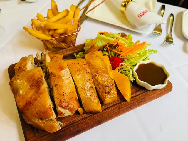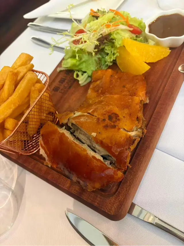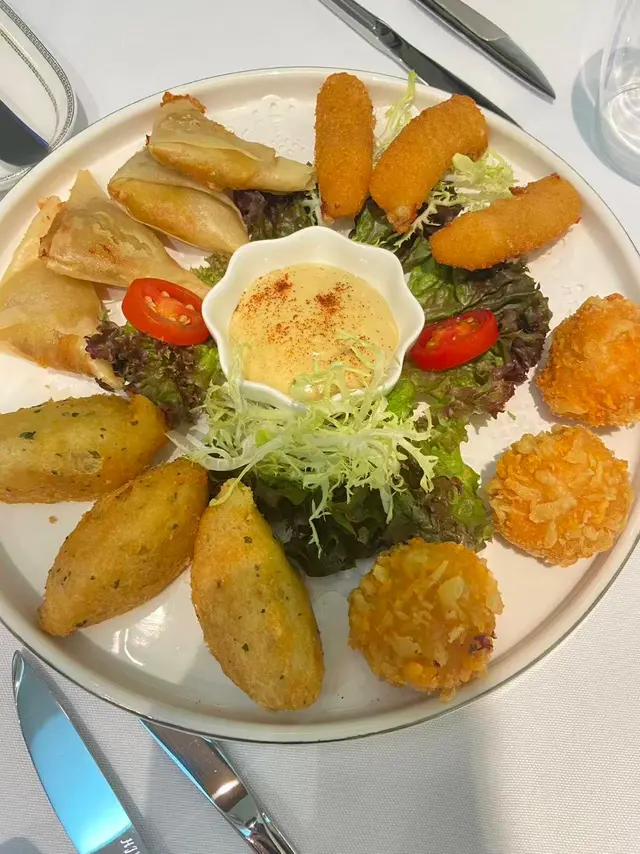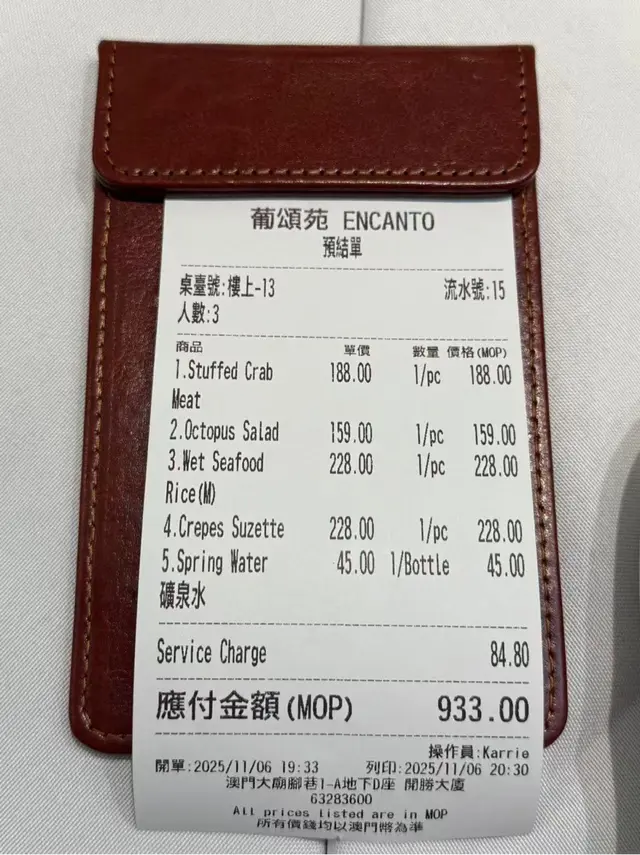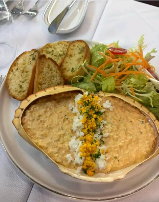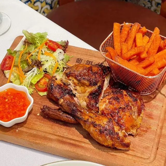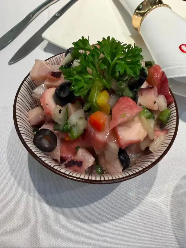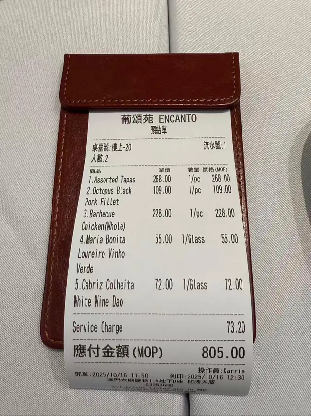 8月最後一日🤭澳門一日遊❤️今次試下呢間係新馬路嘅葡頌苑❤️門口裝修好靚,好有葡國風格❤️四個人一齊試新嘢🤣人都可以試多啲真係好🤭章魚沙拉呢款章魚沙拉色彩繽紛、清新爽口,絕對係一道令人食指大動嘅前菜。主角係切成啖啖肉嘅章魚,質感彈牙,配上黑橄欖、紅黃椒粒、洋蔥碎,再加上新鮮芫荽點綴,視覺同味覺都好有層次❤️❤️推薦🔥🔥🔥葡式海鮮飯有大蝦、蜆、青口、魷魚圈等海鮮,鮮味十足,配上香草、橄欖油同香料慢煮,令每一口都充滿海洋氣息。面頭仲加咗新鮮芫荽,唔單止提香,仲令賣相更加吸引。味道鮮甜中帶微辣,令整體層次更分明❤️好食到停唔到口❤️白酒炒蜆黎到嘅時候已經香氣撲鼻,睇見都流口水!蜆肉飽滿鮮甜,配上蒜蓉、香草同白酒慢炒,湯汁清澈中帶微酸,完美釋放蜆嘅鮮味💖💖必食推薦🔥🔥🔥葡式風味辣醬烤雞配脆皮地瓜及沙律 賣相一流,色香味俱全🤤🤤香辣烤雞以葡式方法醃製,外皮烤至金黃微焦,肉質嫩滑多汁🤤辣中帶香,啖啖肉真係正❤️地瓜條炸至外脆內軟,數量都幾多🤭❤️仲有一個新鮮沙律菜,平衡成件事🤭焦糖布甸表面鋪上一層幼細砂糖,再用火槍即場燒至焦糖化,形成一層薄脆糖衣。畢落去嘅時候,先聽到「咔」一聲,布甸甜而不膩,必食推薦🔥🔥🔥嚟到澳門放縱一下🤣 好味嘅真心推薦❤️❤️值得一試❤️❤️❤️要收加一服務費🤭…查看更多