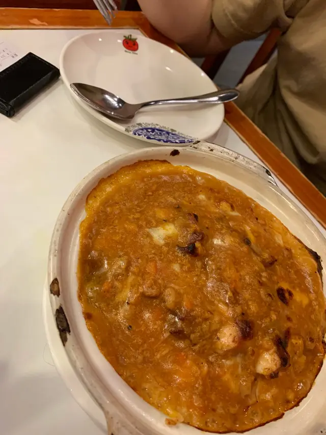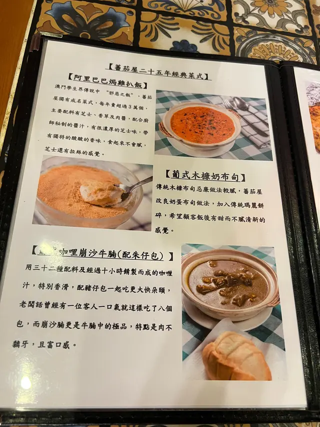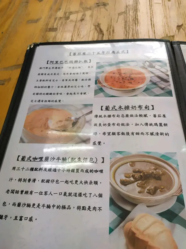 今次去澳門玩,順便試咗間葡式餐廳老店——蕃茄屋,聽聞佢哋 平價又有傳統葡國風味,睇下係咪真係有水準!🥔 葡式薯茸焗馬介休(MOP$94)薯蓉細膩幼滑,調味唔會過鹹,馬介休嘅鹹香滲入薯蓉裡面,鹹香濃郁又唔會搶味,整體味道平衡,口感綿密👍🏻🥩 葡式咖喱崩沙牛腩配咸麵包(MOP$92)牛腩 燜得夠淋,完全吸收咗葡式咖喱獨特風味!🍛 葡式咖喱 帶微微辛辣,混合淡淡椰香,同印度或泰式咖喱唔同,冇咁濃烈香料味,反而有種溫和嘅醇厚感。麵包微微帶鹹味,沾埋咖喱汁食特別惹味,比單食更好味!🥬 葡式炒雜菜(MOP$56)炒雜菜用咗 酸酸甜甜嘅茄汁調味,但椰菜偏硬,冇咩特別驚喜,感覺較普通整體嚟講,呢間葡國菜算係價錢親民,味道不過不失,馬介休同葡式咖喱算係有驚喜,如果想試地道葡國菜,又唔想去貴價餐廳,蕃茄屋都係個不錯嘅平民選擇,可以一試!…查看更多