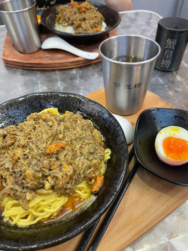 蟹黃撈飯 - $58我哋叫咗一個撈飯同一個撈麵蟹肉蟹膏份量都好多不過就未去到好香濃但有好多蟹膏嘅油撈落啲飯度好邪惡但好夾對比起撈麵就有啲失色底麵有啲淋同埋掛唔到啲蟹肉蟹膏好似分開晒啲嘢嚟食咁同埋同飯唔同嘅係啲麵索唔到啲汁令到整體感覺比較油膩食落比較飽滯所以都係揀返撈飯比較夾呢個仲有極品蟹黃撈飯揀其實姐係啲蟹肉蟹膏份量加碼不過個人覺得普通Size都好夠要留返Quota再食其他嘢…查看更多