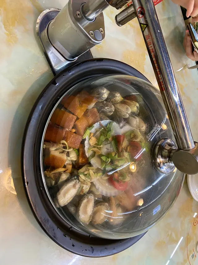 澳門 之 乳豬打邊爐又試過未?😏 nanana415等級42023-06-092K 瀏覽 關注 蒸氣鍋就食得多,火鍋亦食得多,蒸氣火鍋真係第一次食。仲要用乳豬打邊爐。🤣服務員就說,很多香港人都喜歡幫襯他們,食這個蒸氣火鍋。有三款蒸氣火鍋,問過阿姐,基本上係海鮮種類有少少唔同。但份量都係一樣。我哋揀選了最平的那個乳豬海鮮煲 $338。阿姐將一大鍋食物放在爐上,海鮮仍是未烹煮過。本身海鮮煲沒有水,之後撳幾個掣,透明蓋就會自動合上,然後就會自動有水湧入海鮮煲內蒸煮。中途已聞到很香。10幾分鐘後,蓋就會自動打開。然後就可以進食。海鮮有鮑魚,扇貝,花甲,蜆。亦一些蔬菜,蕃茄。咁都有當然少不了是乳豬。海鮮好鮮甜。不過要快啲夾走,因為個鍋一直滾,煮太耐會老。而乳豬經過蒸煮後,有點像豆腐火腩的火腩。乳豬皮感覺沒有那麼熱氣。湯底的味道有點像冬陰功,但沒有冬陰功咁辣。酸酸的,很重香茅的味道。很特別。基本上食完這個鍋已經很飽。若唔飽都仲可以散叫火鍋配料或點小菜。西蘭花炒肉($58)味道正常。…查看更多+ 3以上食評乃用戶個人意見 , 並不代表OpenRice之觀點。2分享澳門 之 乳豬打邊爐又試過未?😏 豐順美食小館 https://s.openrice.com/QrbT1IWbA00檢舉 張貼 評分5味道4環境3服務3衛生5抵食推介美食乳豬海鮮煲用餐途徑堂食用餐時段晚餐