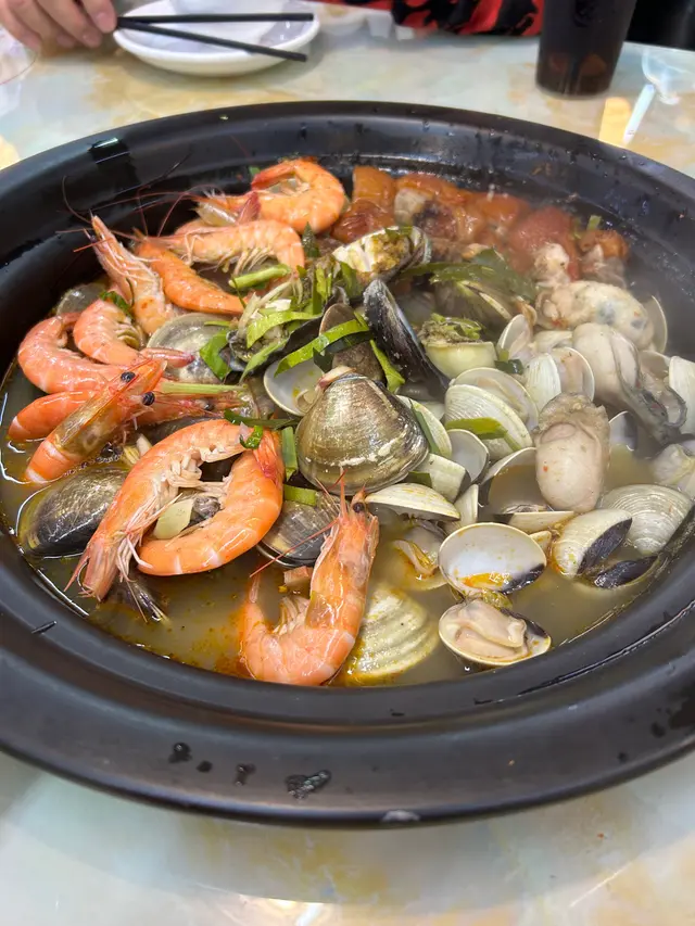 特別海鮮煲 hkdc5400等級22016-12-315K 瀏覽 關注 上的士之後,司機話原來有三間。好彩司機好好人,幫我地打電話確認地址,直去沙梨頭因為一早到,員工仲係到晚飯中,但仍可以先坐,再點餸。來這間主要係食佢個乳豬海鮮煲。雖然乳豬比預期少,但煲底有大量鮮甜沙白,估計有两三斤左右,加上蝦和蟹,和疑似東陰功湯底。正當然,也有叫了小食,如乳鴿,鹵水豬耳,鵝腸,蒜香骨,萵荀肉片,都有ㄧ定水平。一行4大4小,只食了1200元,但已經個個飽住走要行去公園仔做吓運動落吓格先…查看更多以上食評乃用戶個人意見 , 並不代表OpenRice之觀點。讚好分享特別海鮮煲 豐順美食小館 https://s.openrice.com/QrbT14KCf00檢舉 張貼 評分5味道4環境5服務5衛生4抵食推介美食乳豬海鮮煲涼伴豬耳朵用餐日期2016-12-24用餐途徑堂食人均消費$200