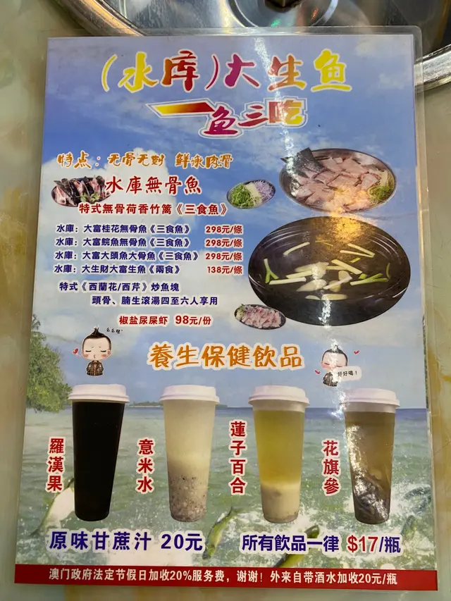> 不得不試 , 乳豬海鮮煲 , 太好食喇 ! 清心 chingsumlife等級22015-08-085K 瀏覽 關注 澳門地膽推介火煱店 ! 抵食 ! 好食 ! 我地一早好有決心咁決定 今晚不食乳豬煲不回港 由16蒲出發 , 打算搭巴士去最近既威翠花園店去到....唔對路喎!個名改左既 , 但都有賣乳豬煲喎!問一問老闆 老闆好誠實咁話比我地知 (好抵讚), 已經轉左手 , 不過我地都有賣不過我地最後都決定要去搵返豐順再問問隔離車房老闆 老闆即刻放低手頭做緊既工作好熱情咁行出路邊 指手劃腳咁 話我地知點搭車點行我去過好多次澳門鐘意澳門因為好多澳門人好有人情味 !好快就搵到豐順美食冷氣夠涼 , 打邊爐夠爽一座低就有一碟鹽水花生奉上鹽水花生係香港一般飯店好小見到咸咸地 , 鐘意飲啤酒既人一定覺得唔錯而且我覺得係愈食愈好食 先黎個炸雲吞 , 個氣好鬆化 依個罪惡感強喇炸大腸依樣野同榴槤一樣愛佢既人就會愛死佢唔鐘意既人就一件都食唔落難!得!既!係!我地成檯五個人都愛!!不過略嫌炸得不夠香脆 , 不夠惹味 ! 冬陰乳豬海鮮煲出場 ~海鮮非常大堆頭用料好足 , 海鮮又新鮮有花蟹仔 , 蝦 , 蛤仔 , 大蜆 , 花甲 , 魷魚 , 粟米 ....湯底有冬陰香但係完全唔辣大量海鮮既鮮味同精華係曬入面鮮甜到不得了入面仲有好有新意既乳豬加埋一齊煲估唔到個效果又OK WOR好夾好香!仲有加埋D油炸鬼去索曬湯實在太美味喇如果唔大食 , 依個煲真係夠三個人飽飽而佢只係賣緊mop298!!!!澳門而家好多地方食野都貴左好多豐順美食仲做緊依個良心價 , 實在抵讚 !當日我所見都係多數澳門本地人幫襯 肥美生蠔大大隻又唔縮水 ! 蝦膠 肥牛入口即溶 好味有圖有真相之睇下幾抵食除左上圖果d野仲有d菜呀 , 啤酒 , 飲品我無影我地五個人食到棒住個肚仔走每人mop175超抵食真心推介!…查看更多+ 5以上食評乃用戶個人意見 , 並不代表OpenRice之觀點。5分享> 不得不試 , 乳豬海鮮煲 , 太好食喇 ! 豐順美食小館 https://s.openrice.com/QrbT1rT4b00檢舉 張貼 評分5味道4環境5服務4衛生5抵食推介美食乳豬海鮮煲用餐日期2015-07-20用餐途徑堂食人均消費$175 (晚餐)
